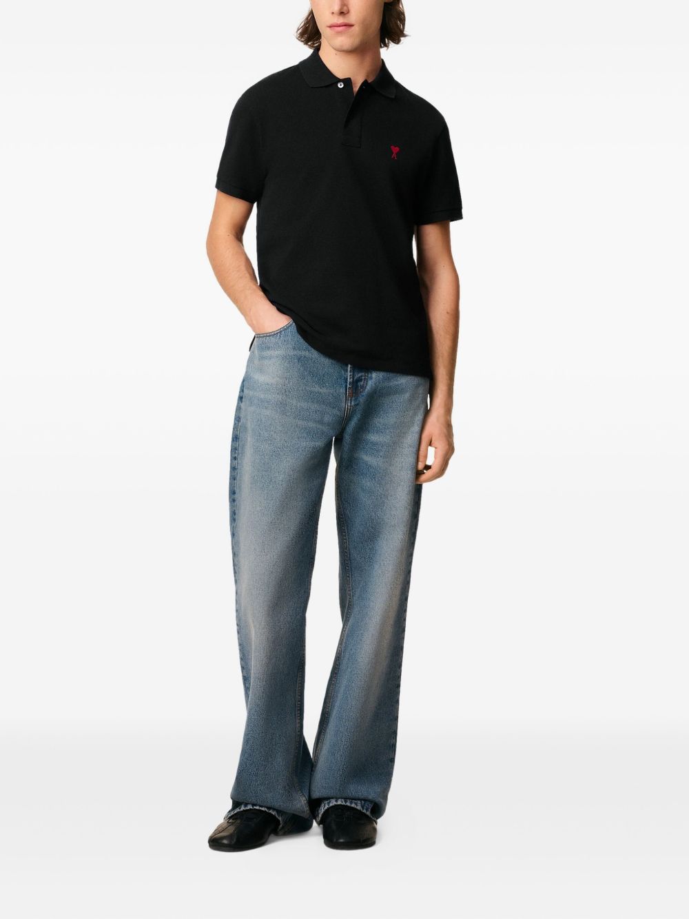 black organic cotton piqué weave embroidered logo at the chest polo collar front button placket short sleeves straight hem When buying this unisex item, keep in mind that it is graded in standard men's sizing.