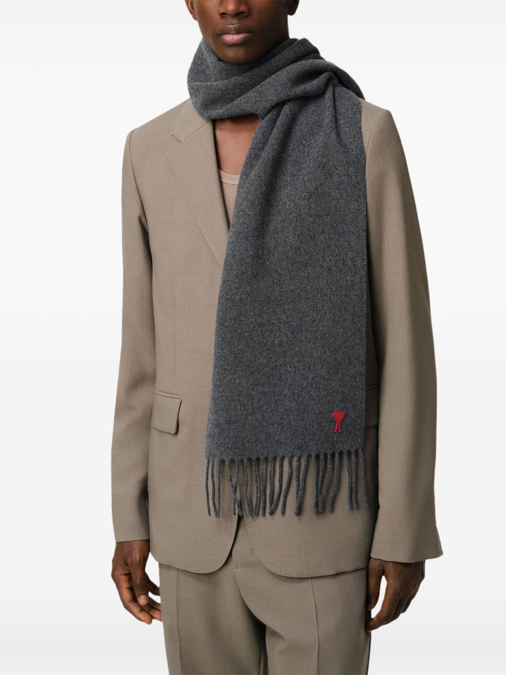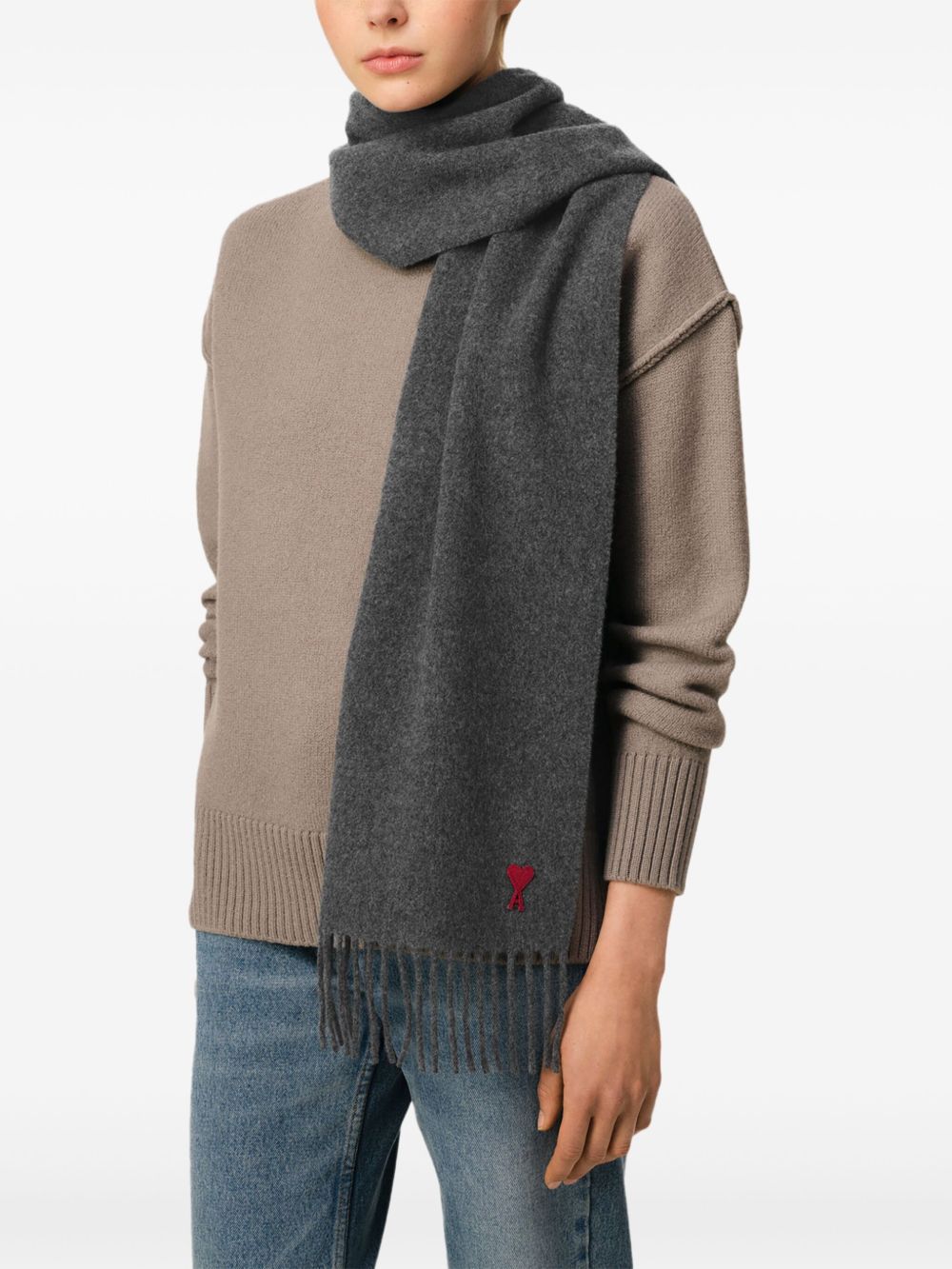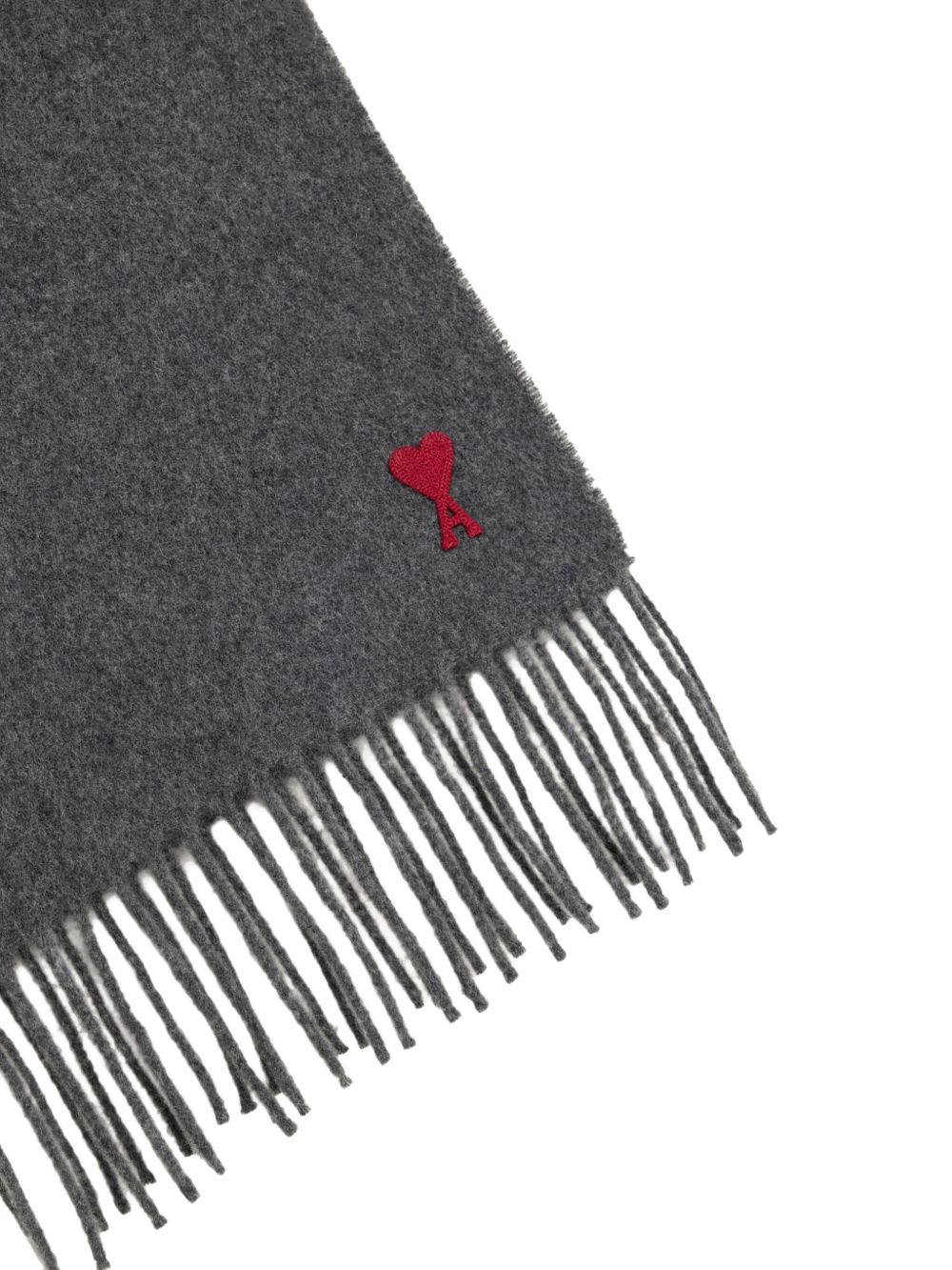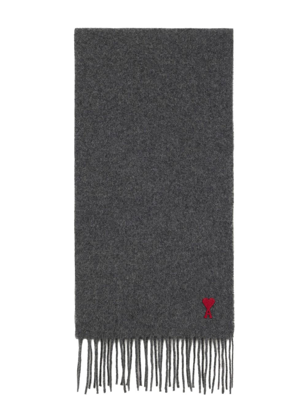 medium grey wool felted finish signature Ami de Coeur monogram motif fringed edge rectangle shape