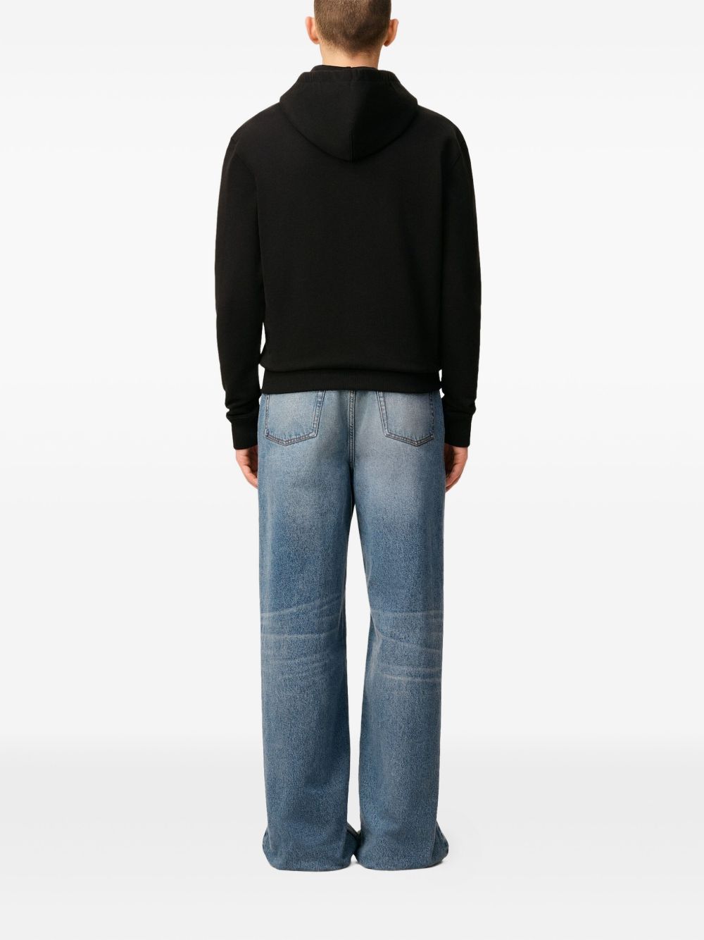 black front zip fastening slouchy drawstring hood side pouch pockets When buying this unisex item, keep in mind that it is graded in standard men's sizing.