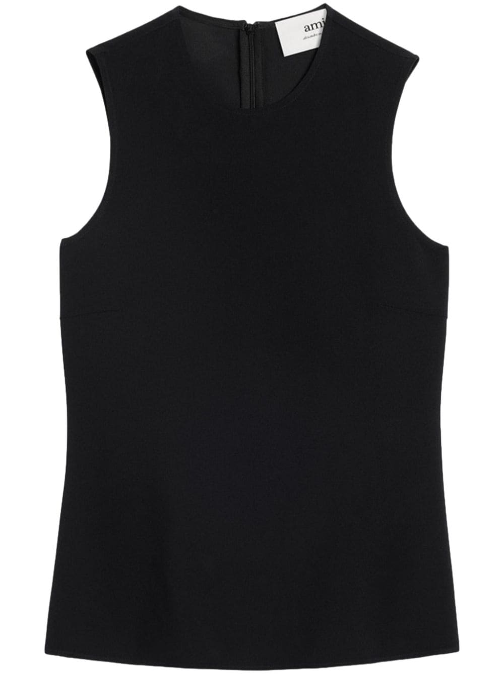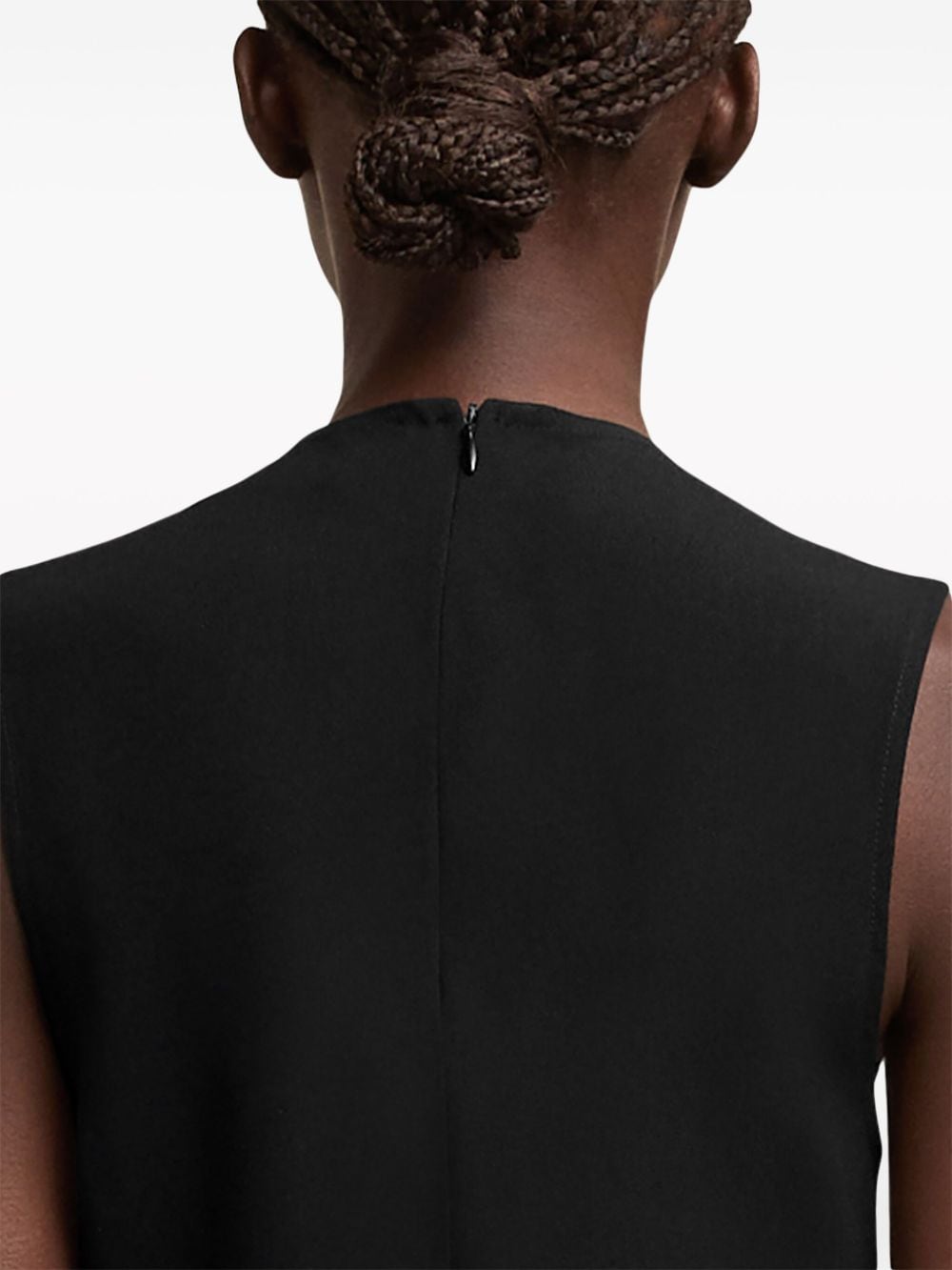 black crepe texture round neck rear zip fastening sleeveless straight hem