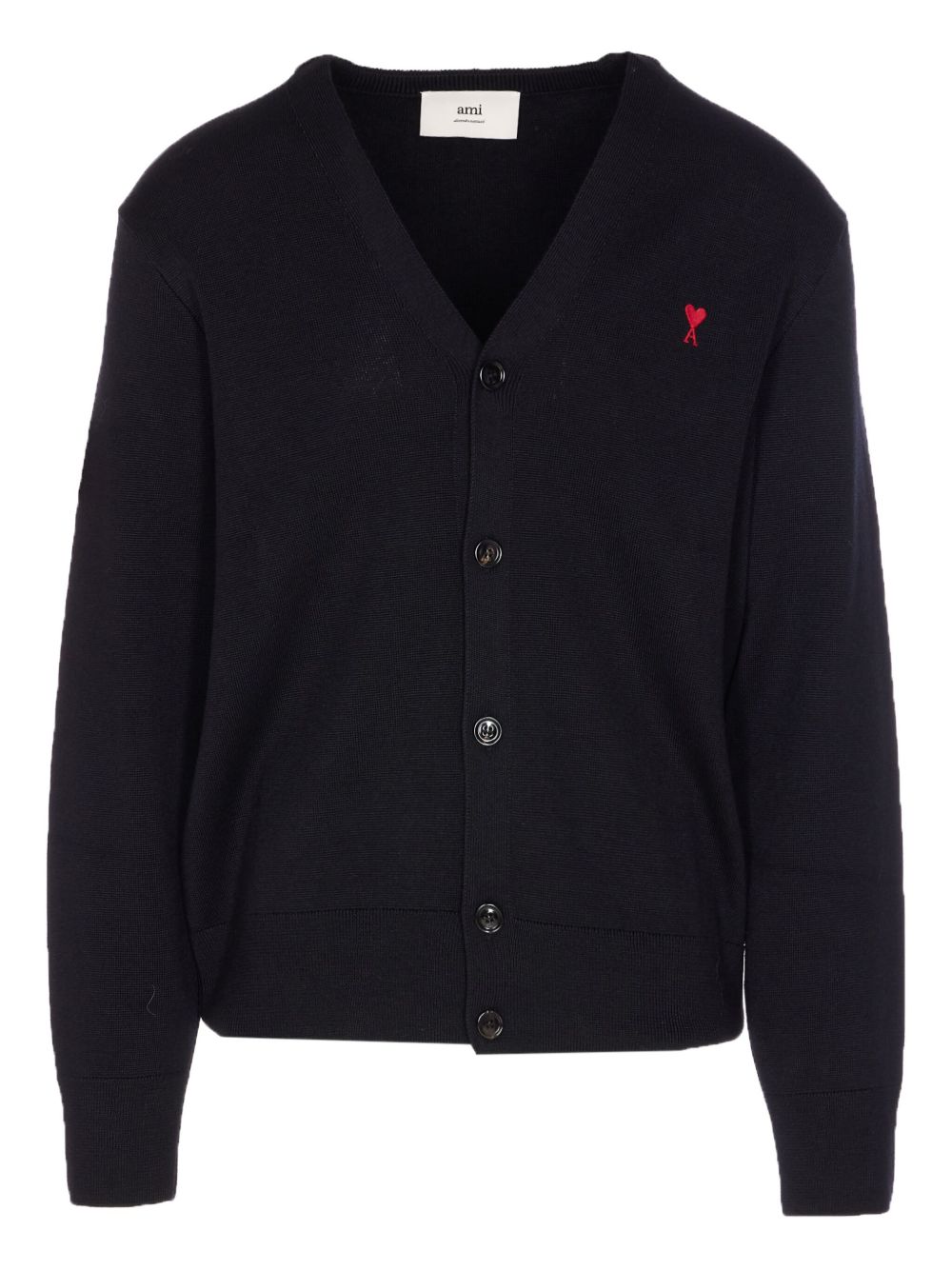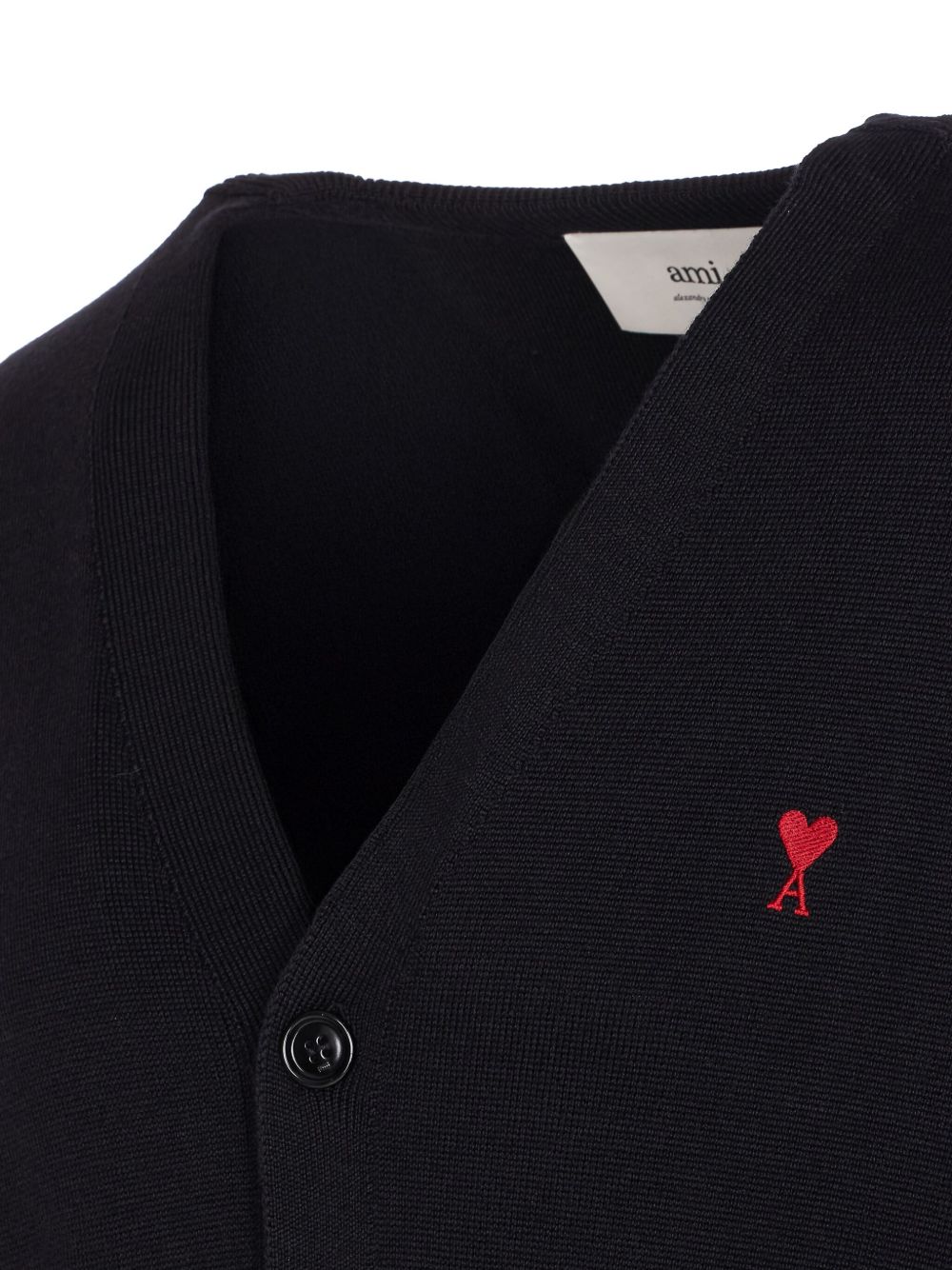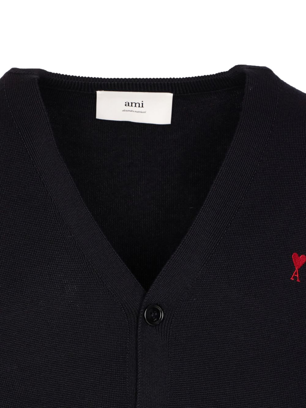 black wool knit v-neck buttonned-front Ami de Coeur embroidery