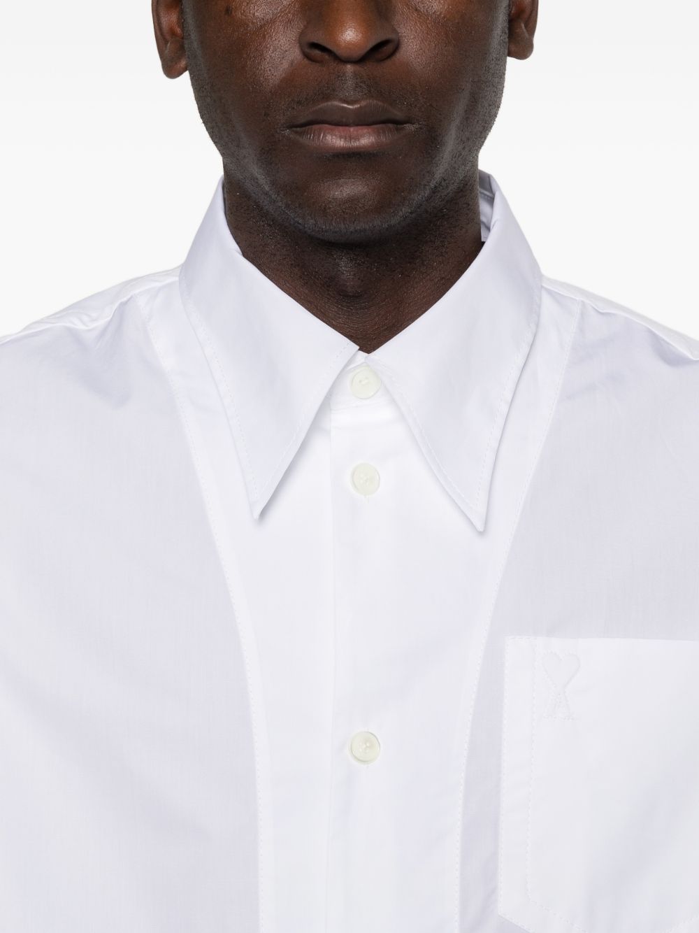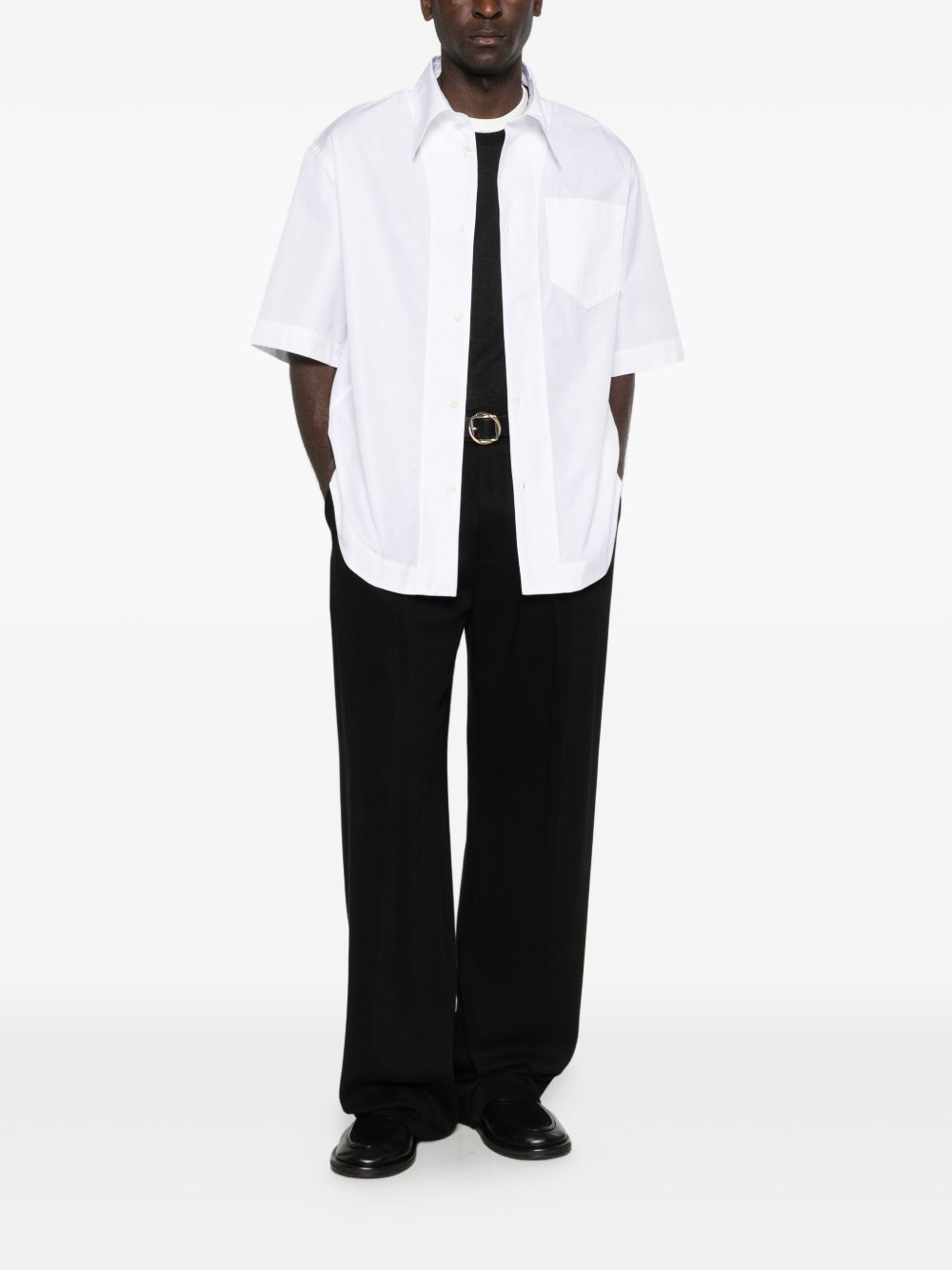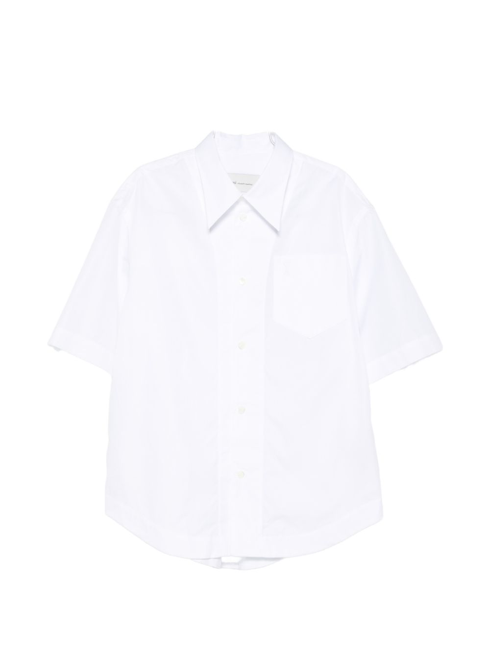 white chest pocket short sleeves button fastening
