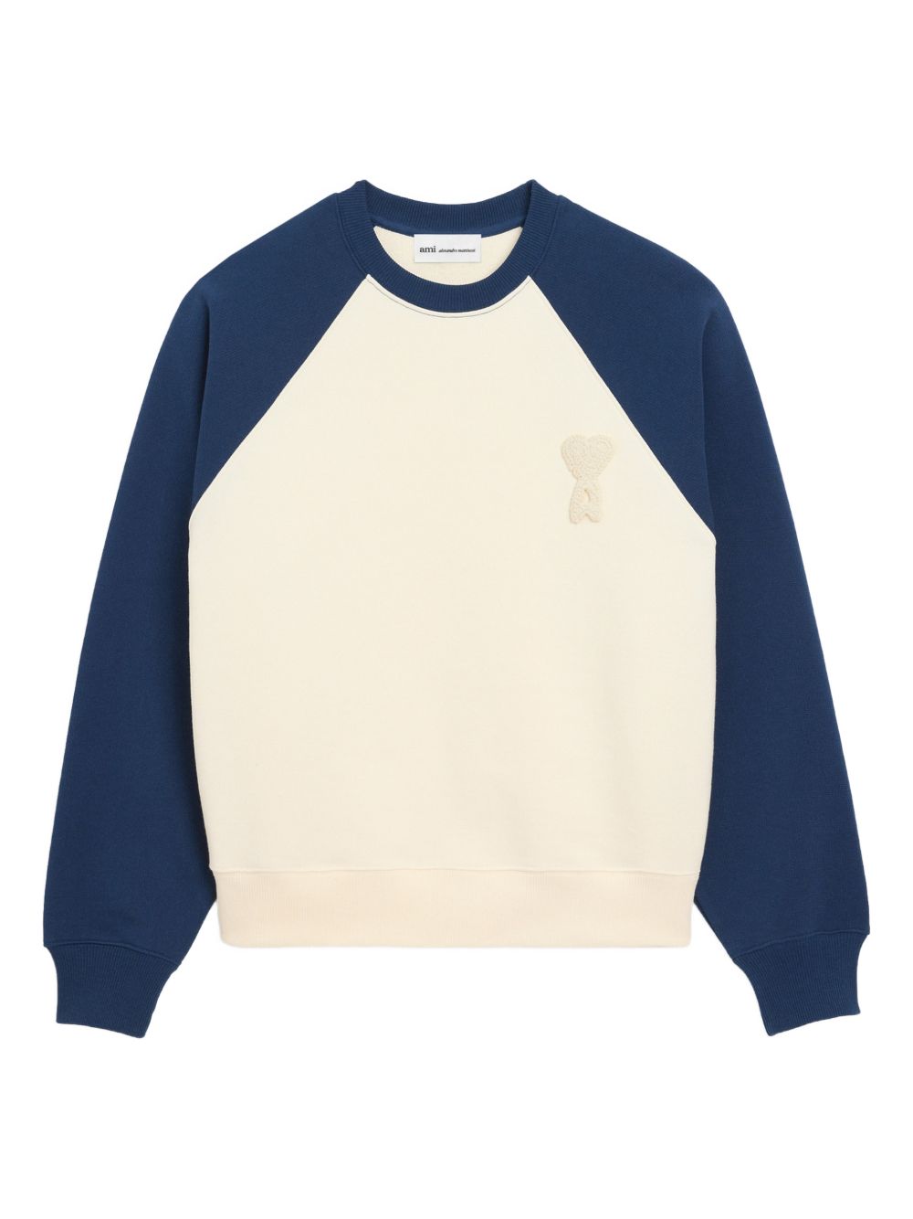 cream and blue two-tone design raglan sleeves Ami De Coeur knitted patch crew neck