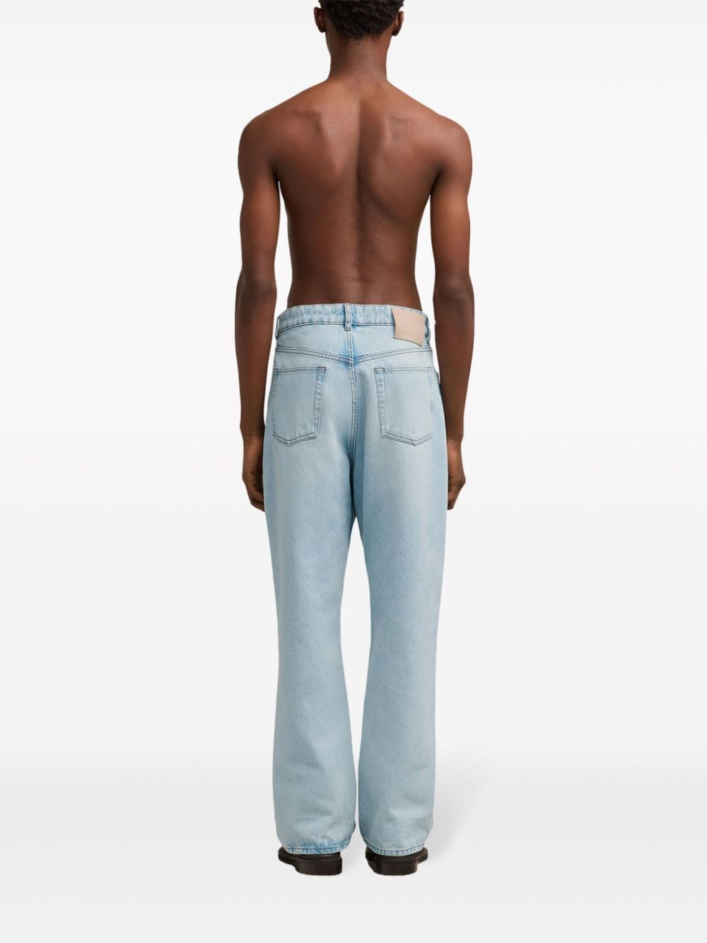 light blue cotton denim mid-rise belt loops concealed fly and button fastening classic five pockets straight leg When buying this unisex item, keep in mind that it is graded in standard men's sizing.
