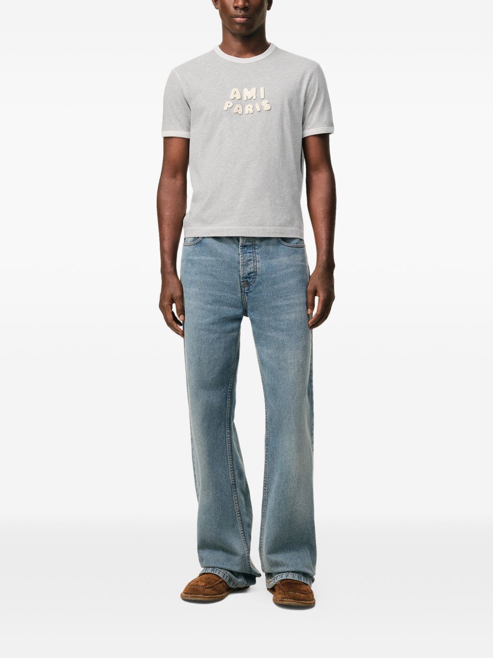 grey logo patch tonal embroidery short sleeves crew neck