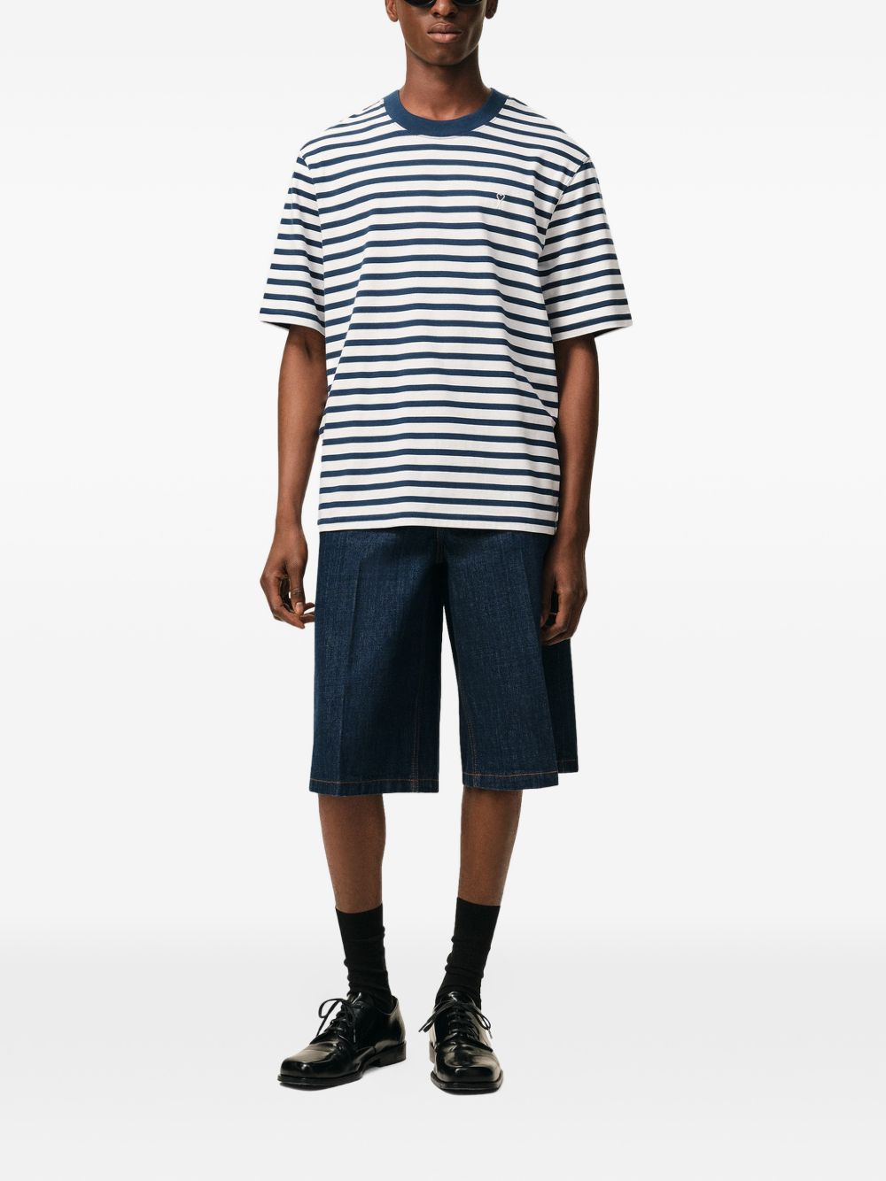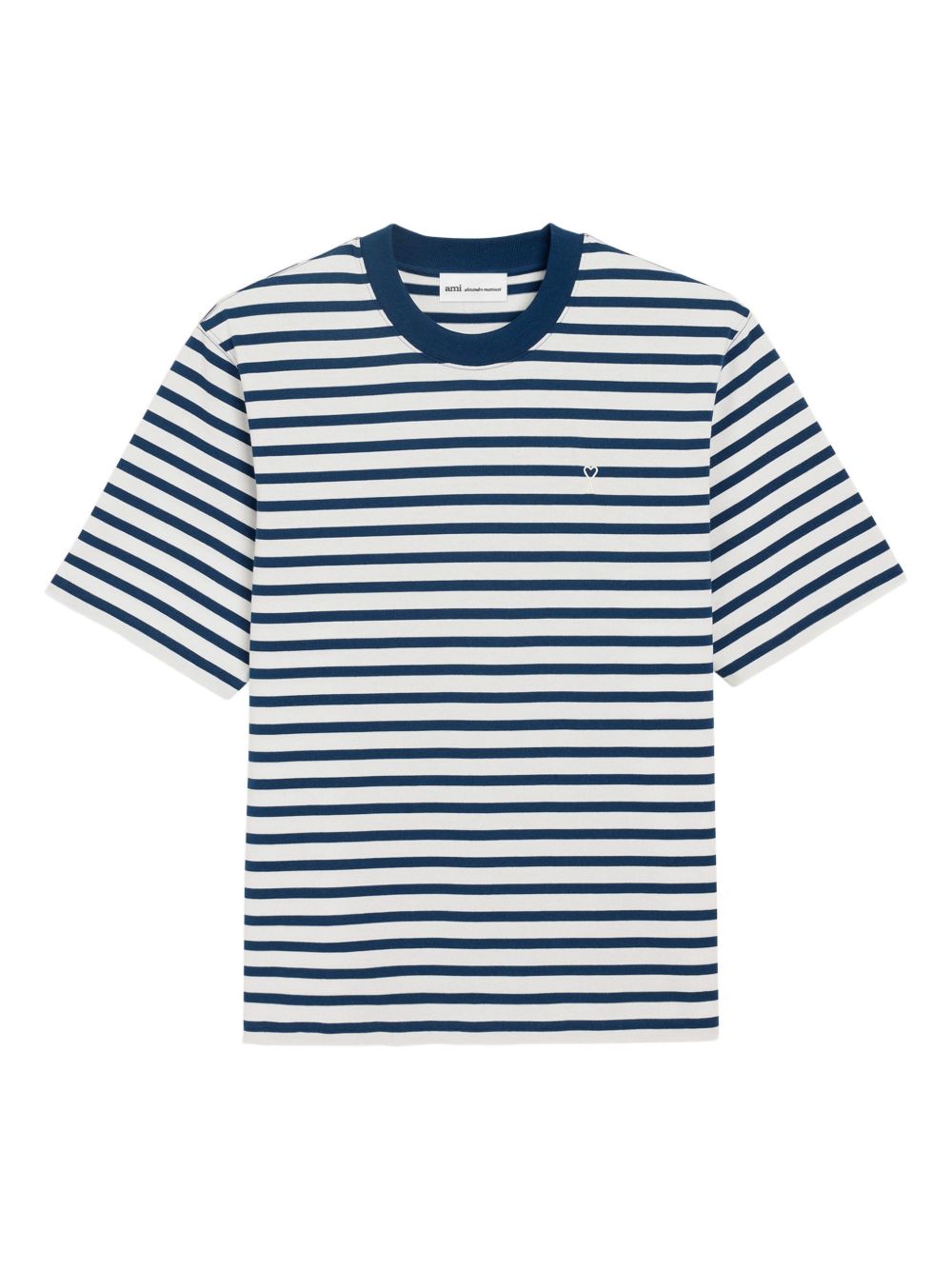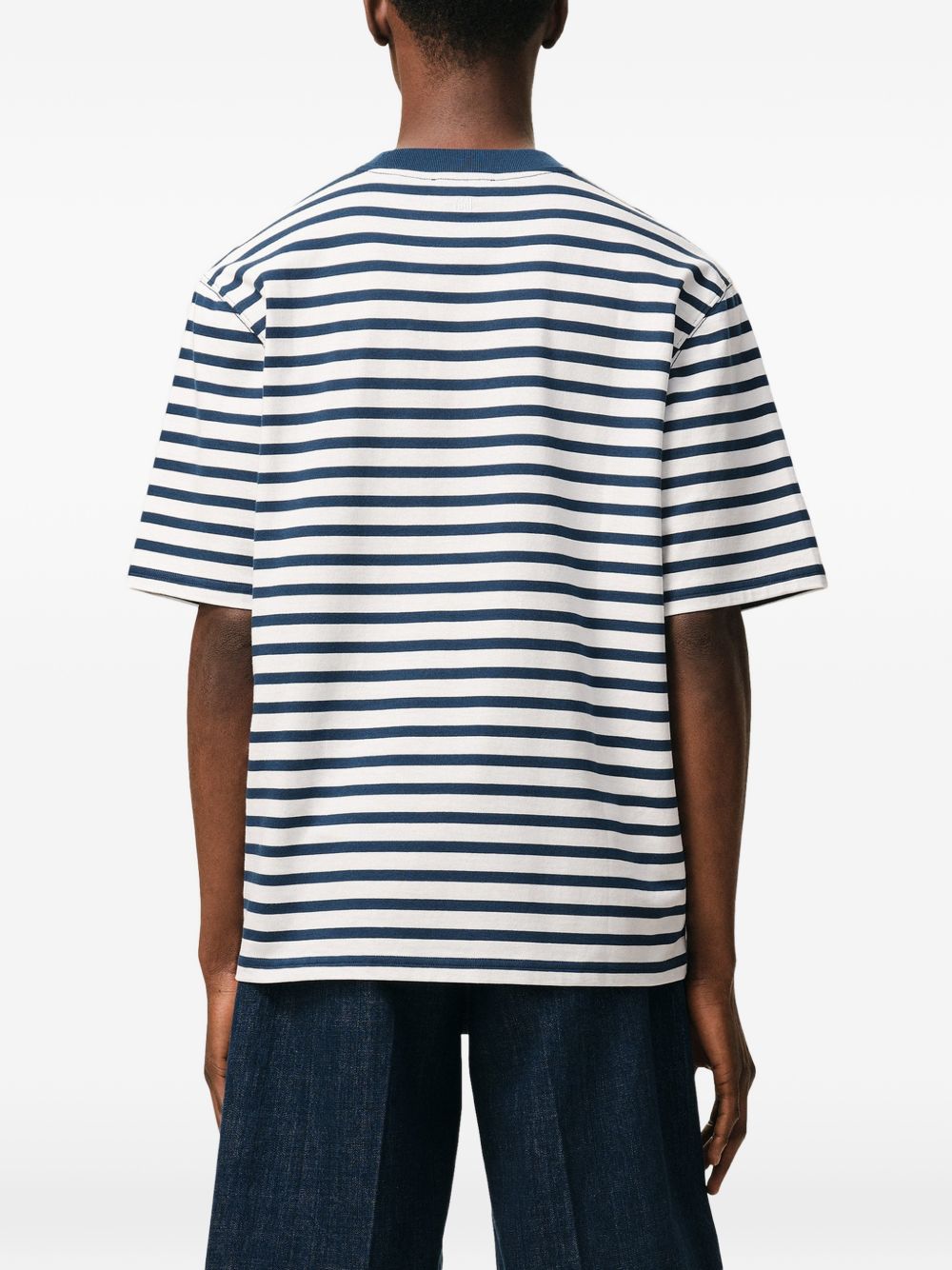 blue and white cotton striped design embroidery patch crew neck short sleeves boxy fit