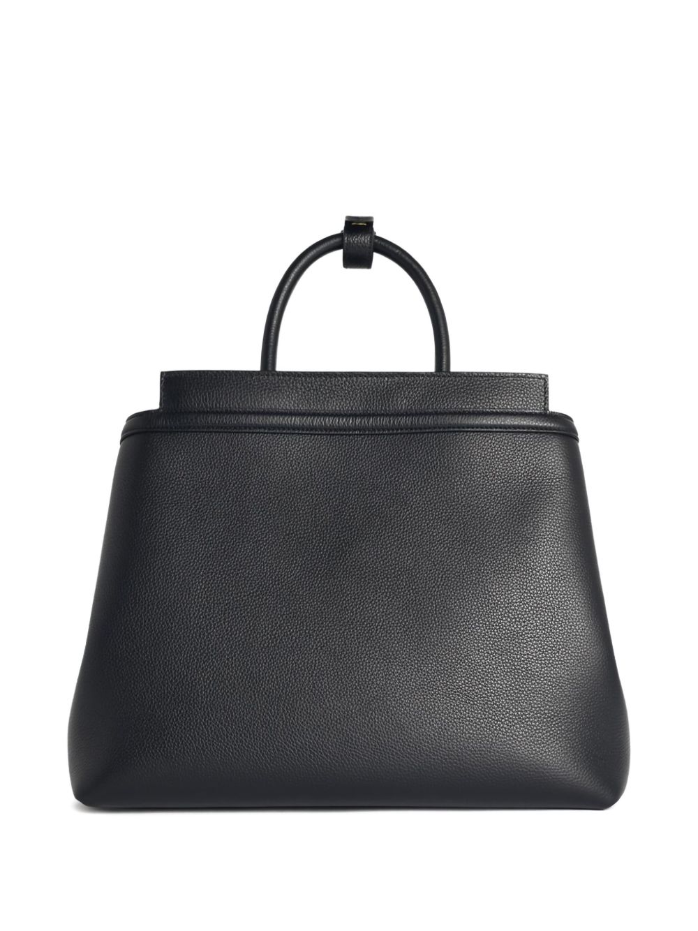 black calf leather double top handle logo plaque adjustable removable shoulder strap magnetic button closure