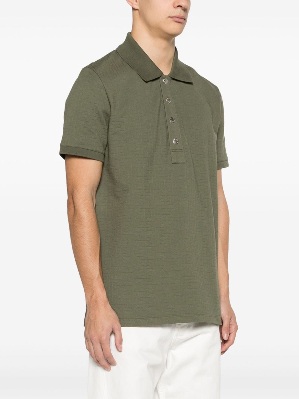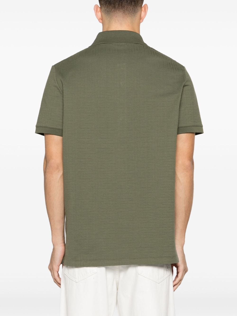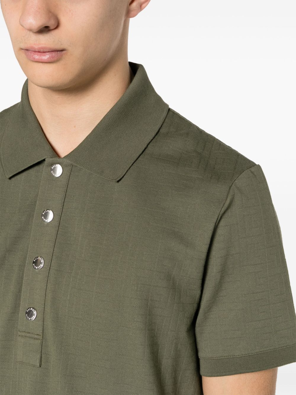 khaki cotton blend patterned jacquard polo collar front button placket short sleeves ribbed cuffs short side slits straight hem