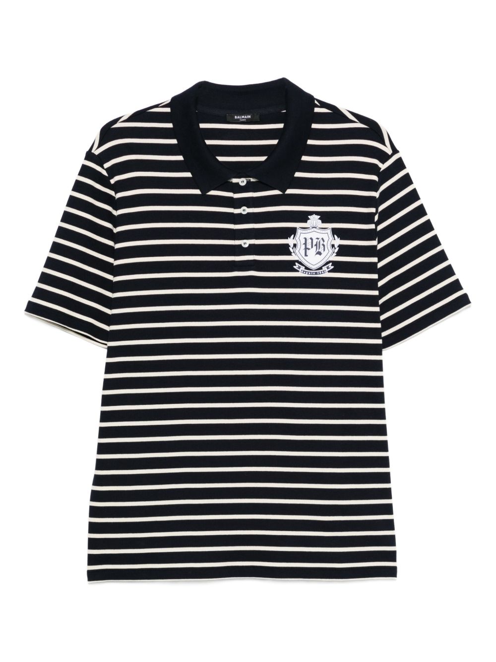 black striped pattern logo detail button fastening short sleeves