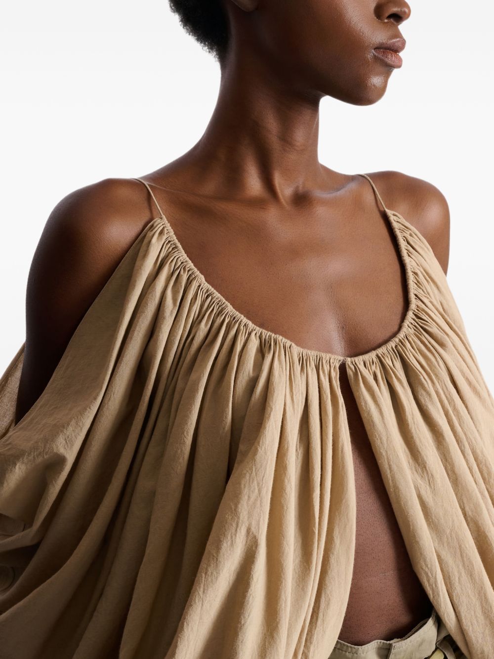 beige gathered detail cut-out detail spaghetti straps long sleeves cotton
