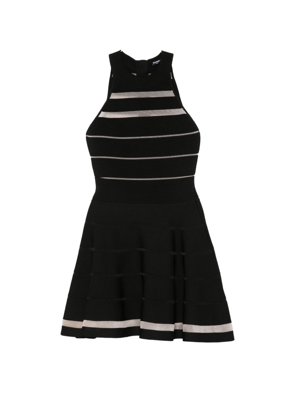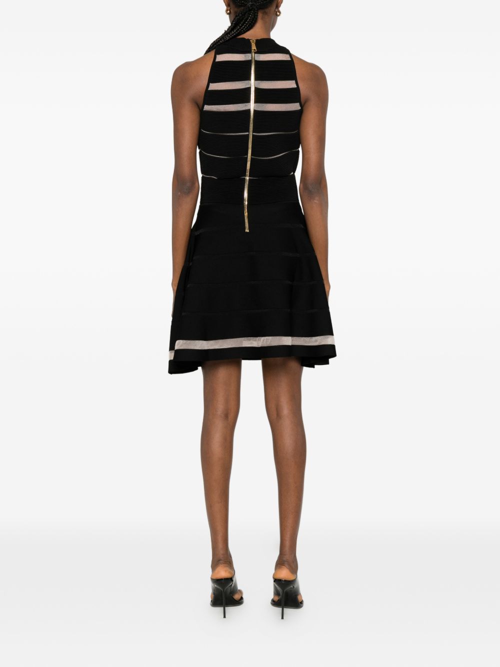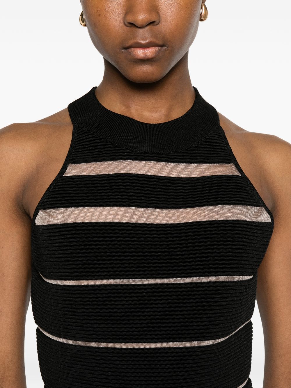 black striped sleeveless round neck A-line skirt ribbed