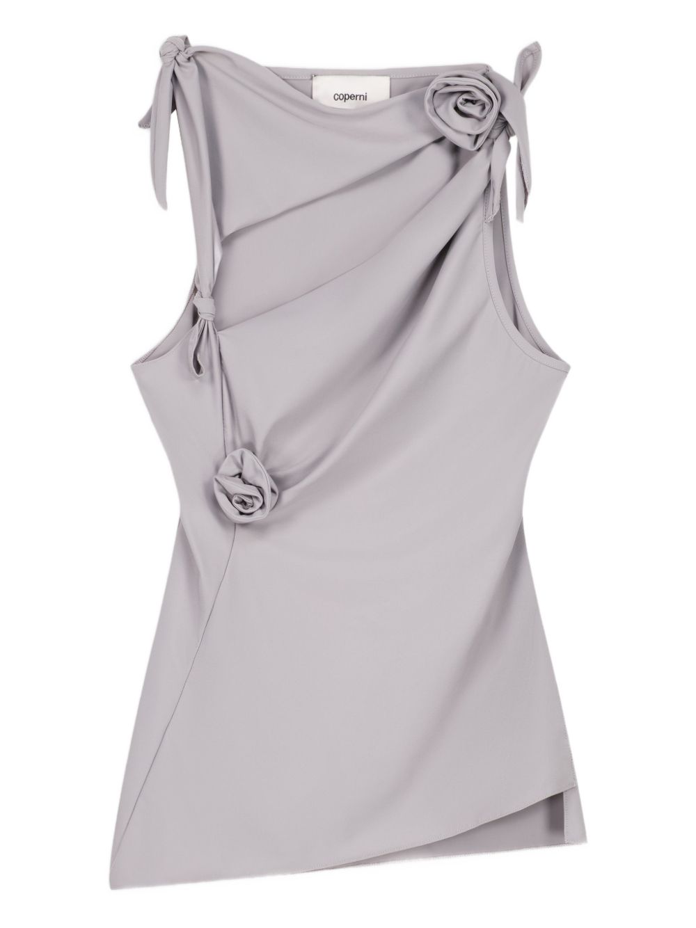 grey asymmetrical design flower detail sleeveless cut-out detail