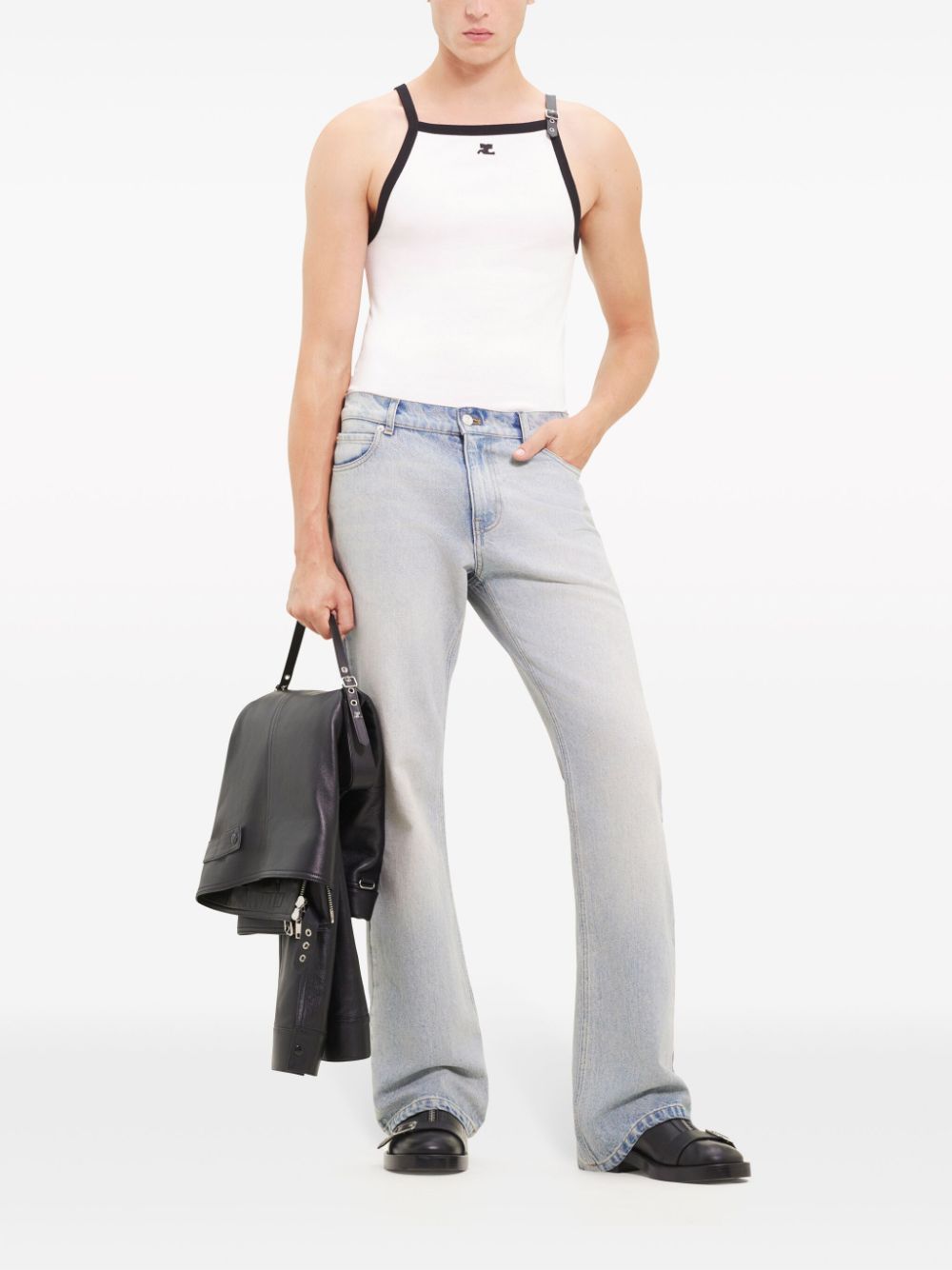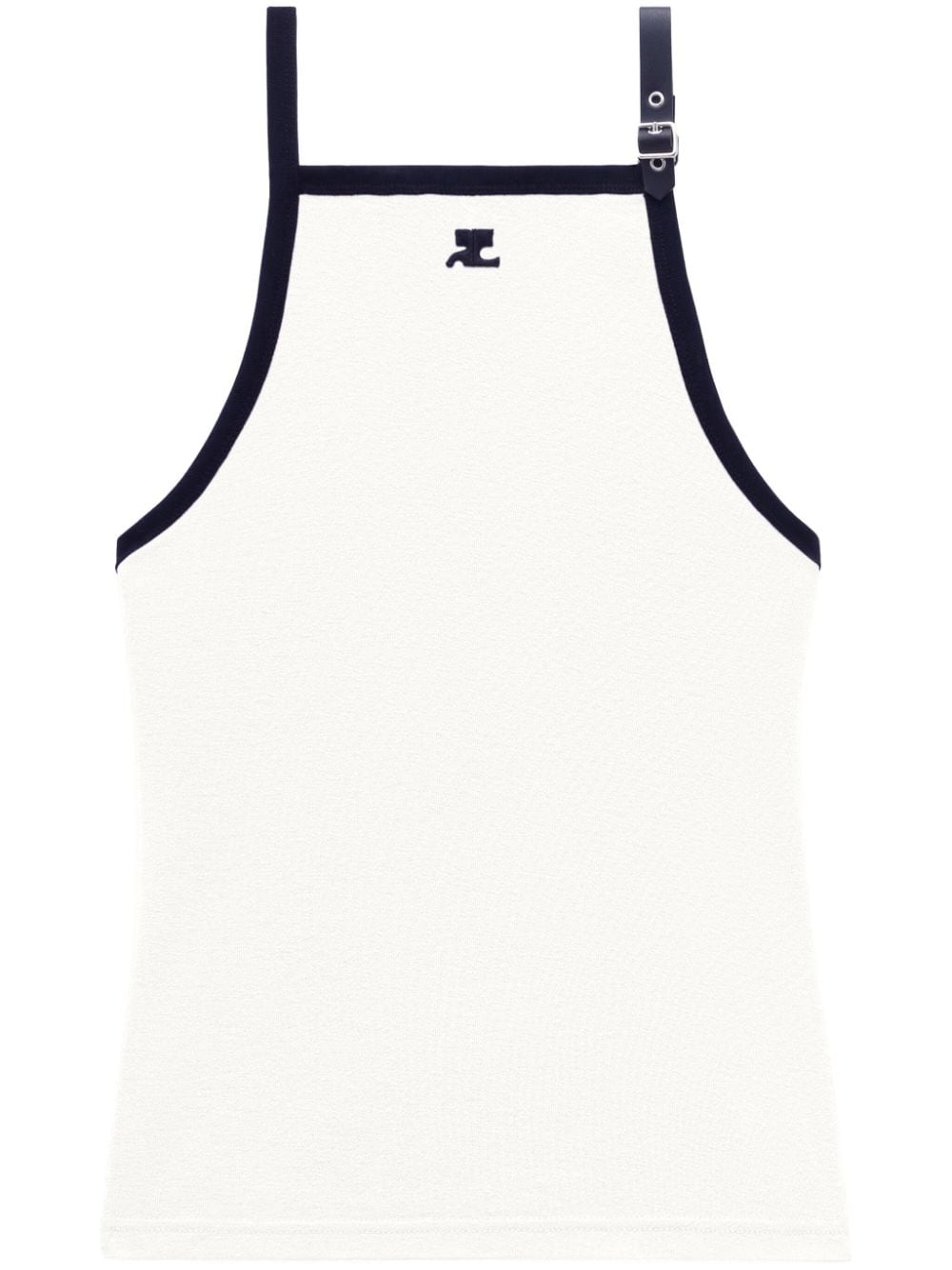 white/black cotton soft jersey contrasting trim logo-buckle detail logo patch to the front square neck sleeveless straight hem unlined