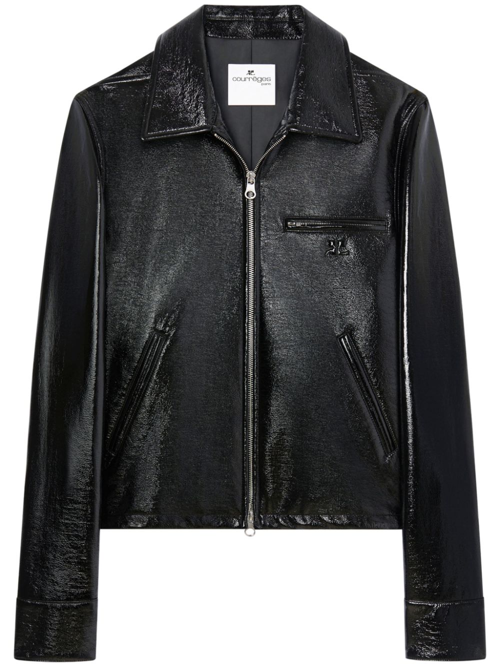 black front two-way zip fastening zip-fastening chest pocket two side zip-fastening pockets embossed logo to the front