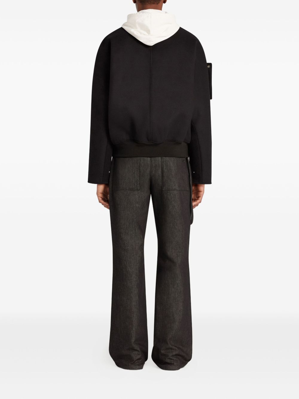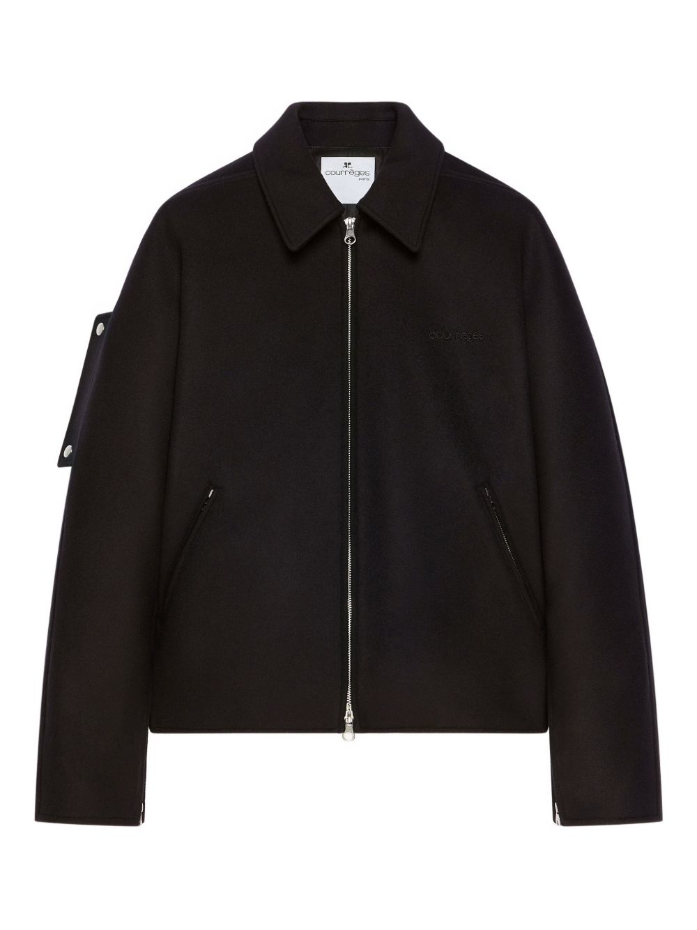 black pointed collar zip fastening side pockets shoulder tab detailing