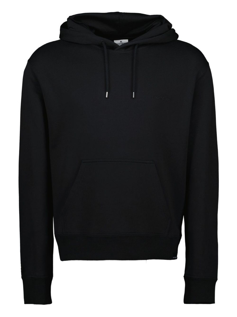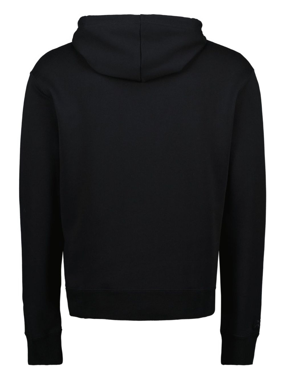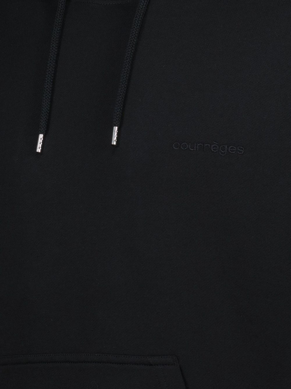 black cotton embroidered logo kangaroo pocket drawstring hood long sleeves ribbed hem ribbed cuffs