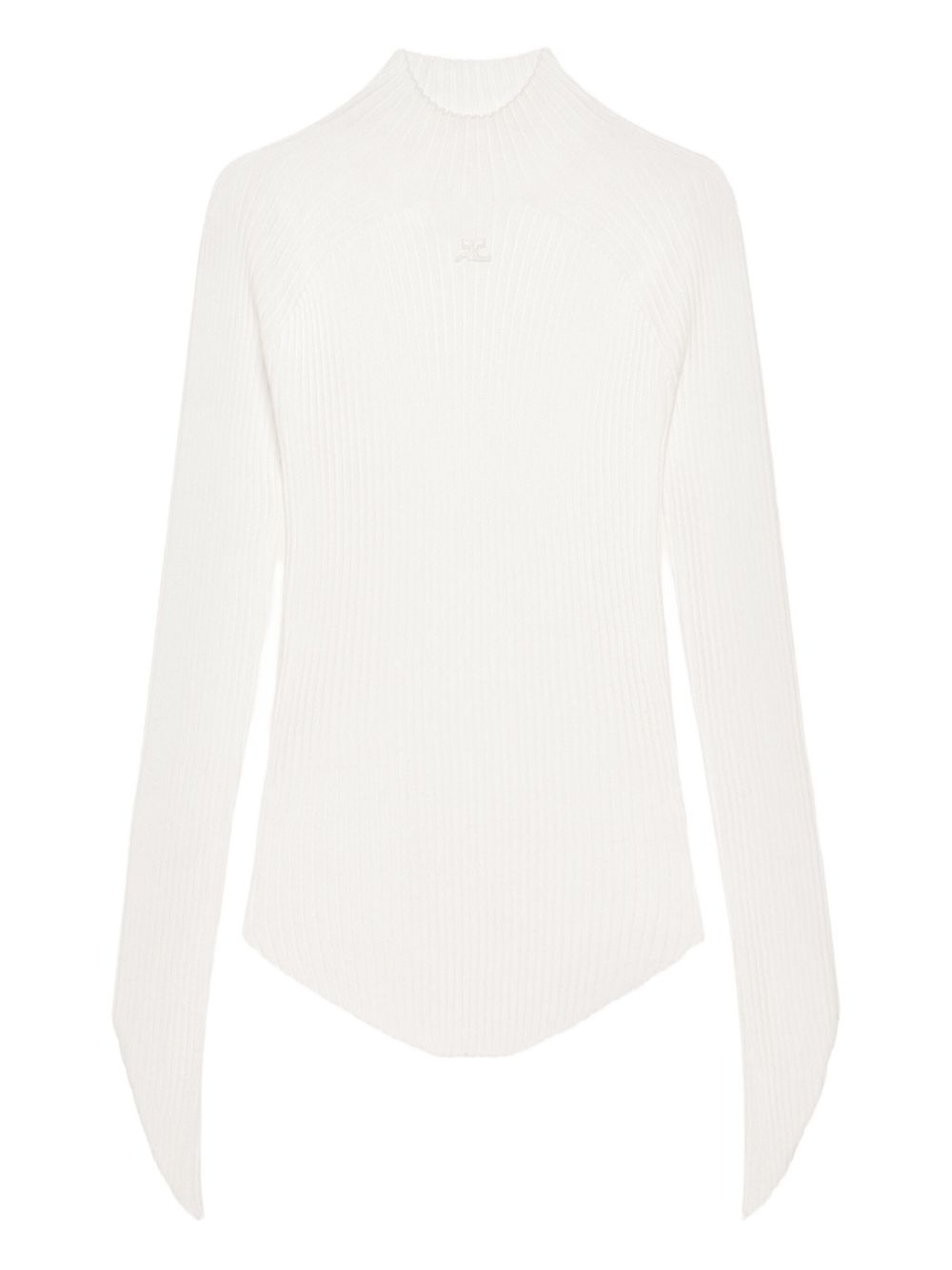 white high neck long sleeves ribbed texture logo detail
