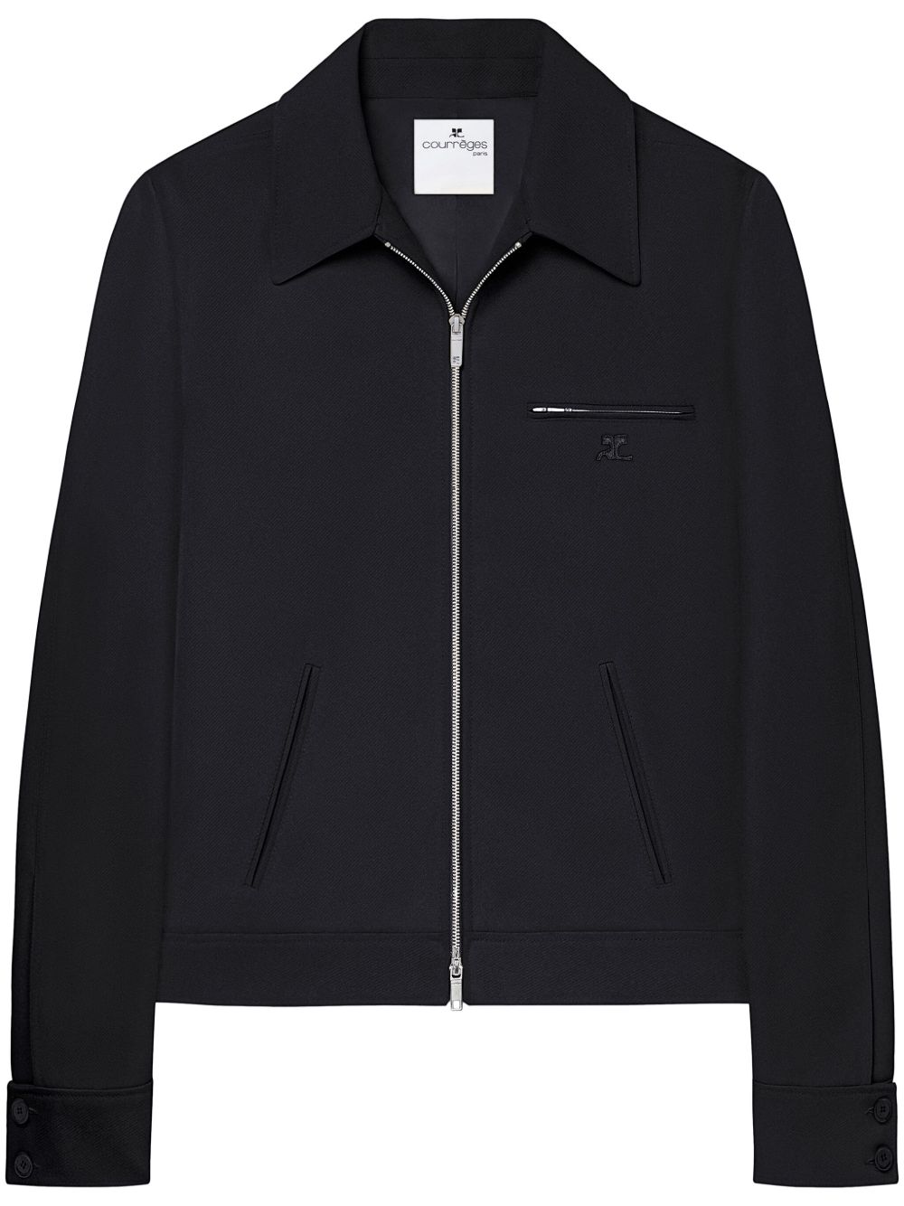 black twill weave classic collar long sleeves with buttoned cuffs logo patch at the chest zip-fastening chest pocket two front jetted pockets straight hem front two-way zip fastening