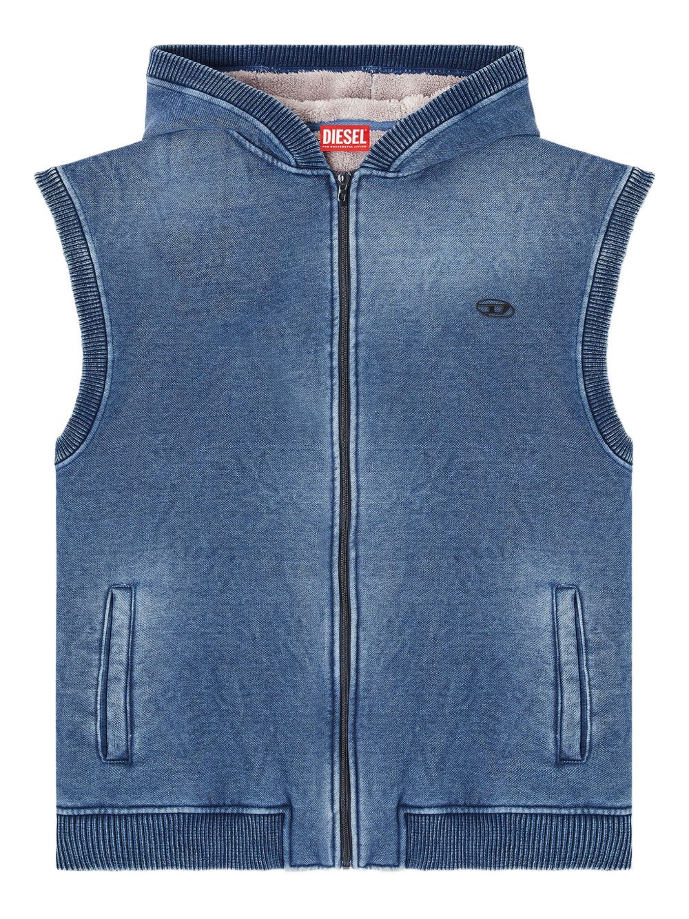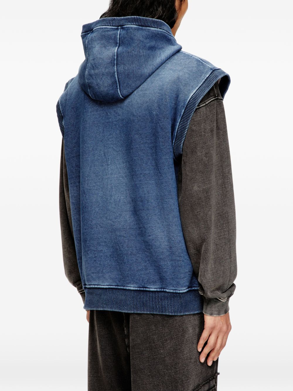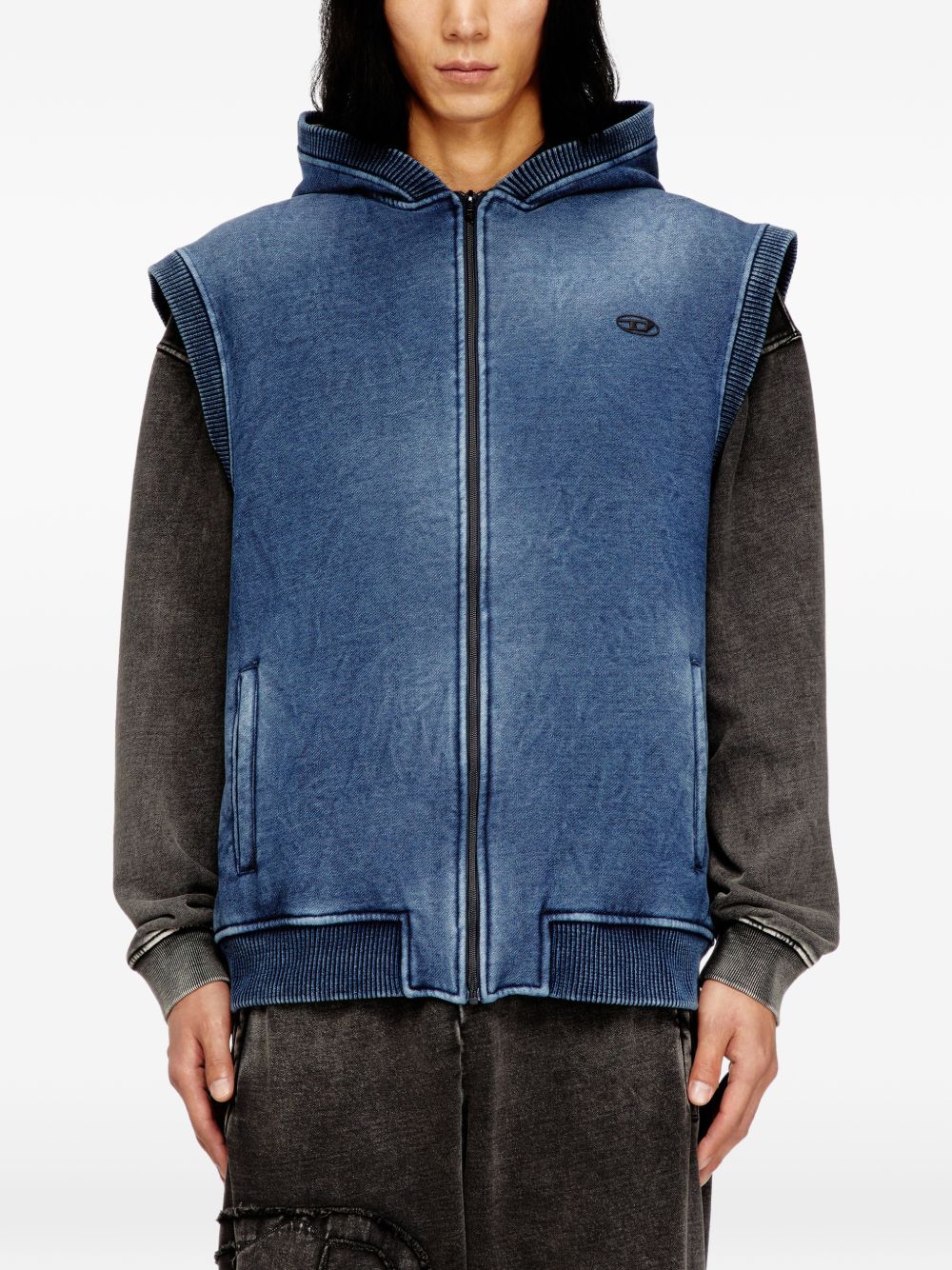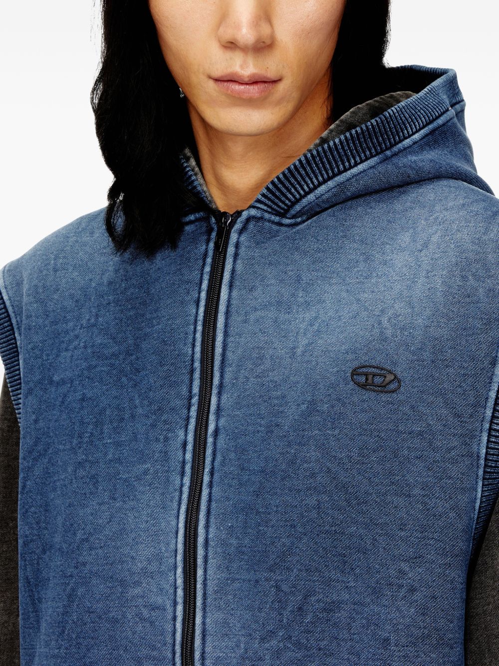 faded blue embroidered logo full-zip fastening hooded ribbed hem sleeveless