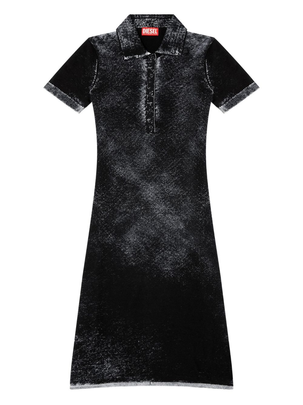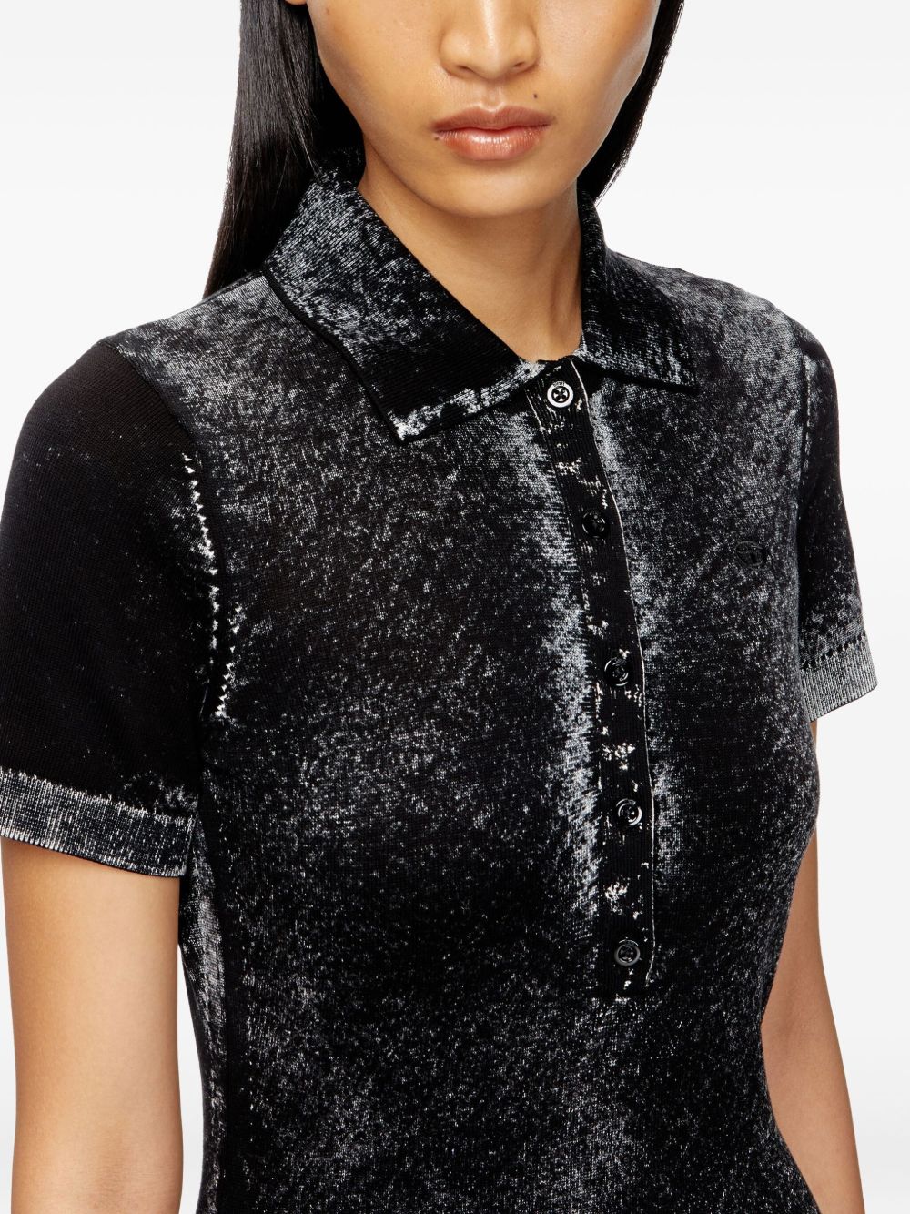 black cotton knit button placket short sleeves embroidered logo internal printed treatment
