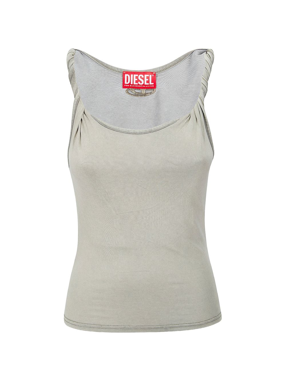 grey embroidered detail knotted shoulder strap sleeveless round neck
