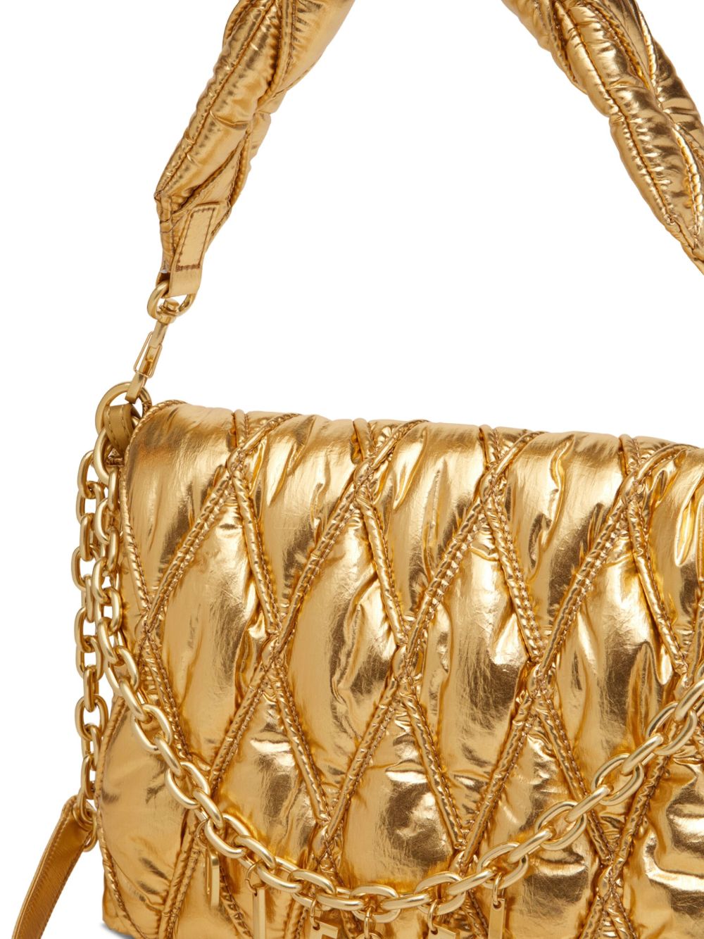 gold-tone foldover top with magnetic fastening single detachable top handle two chain-link top handles internal zip-fastening pocket