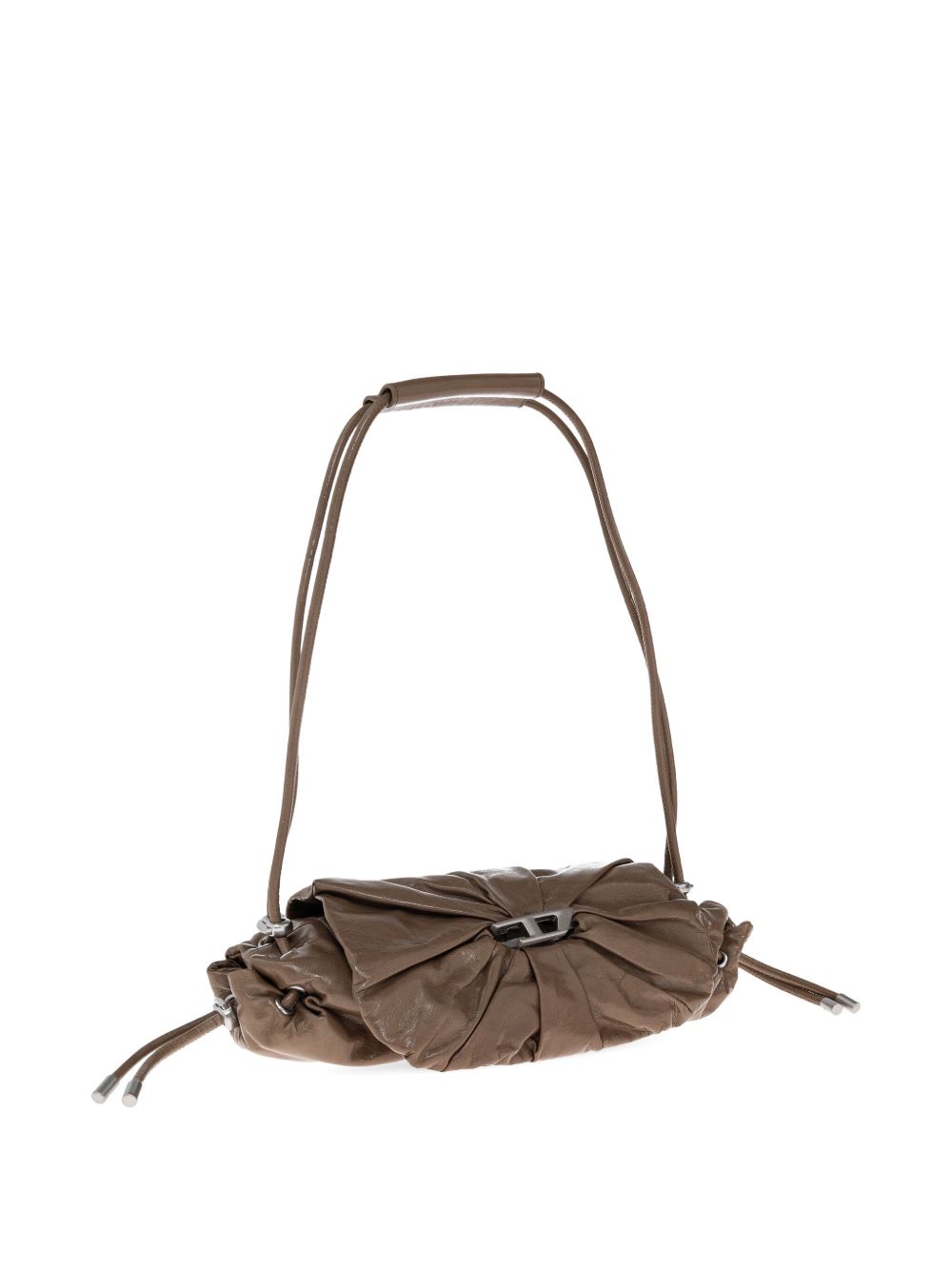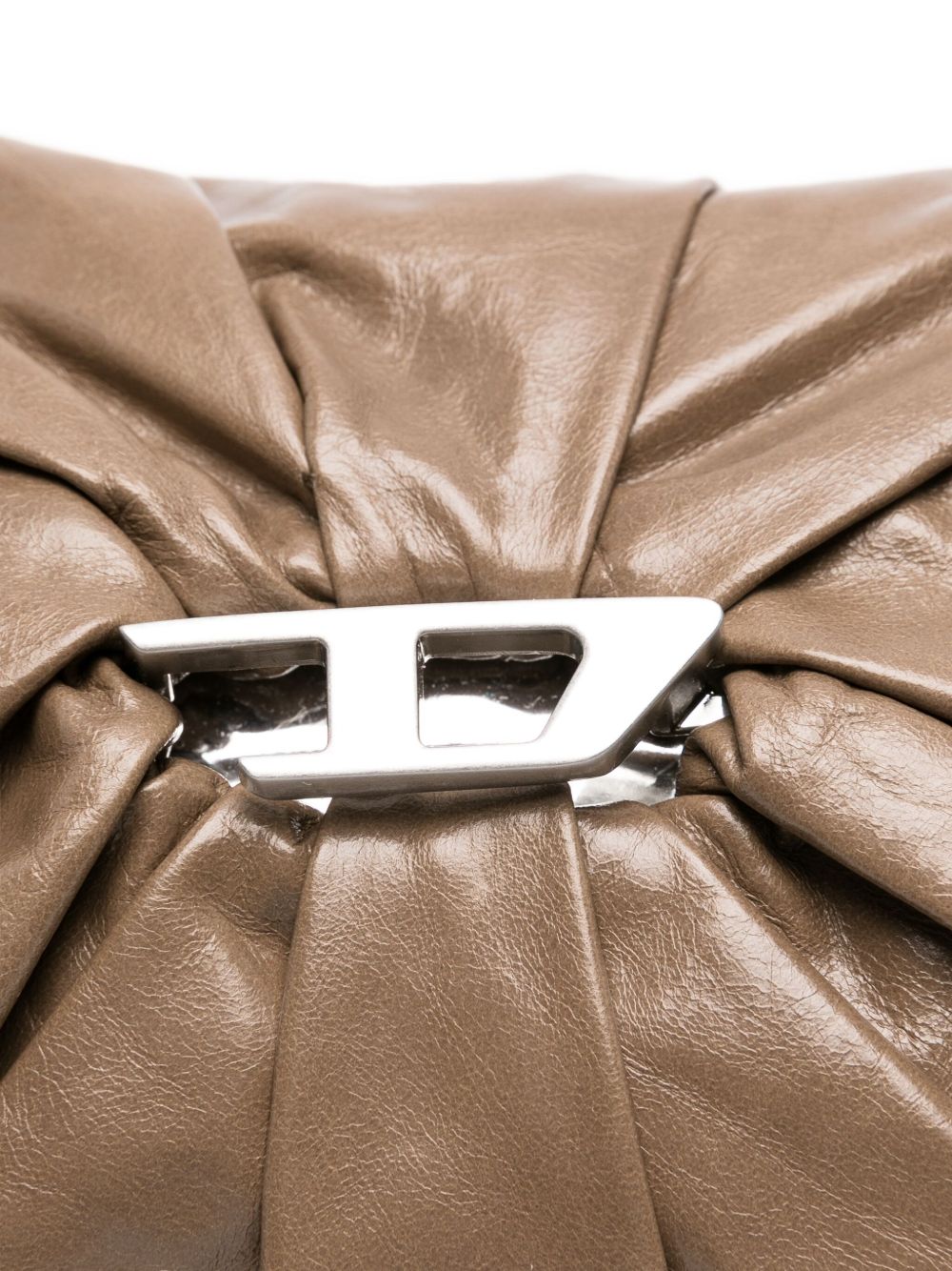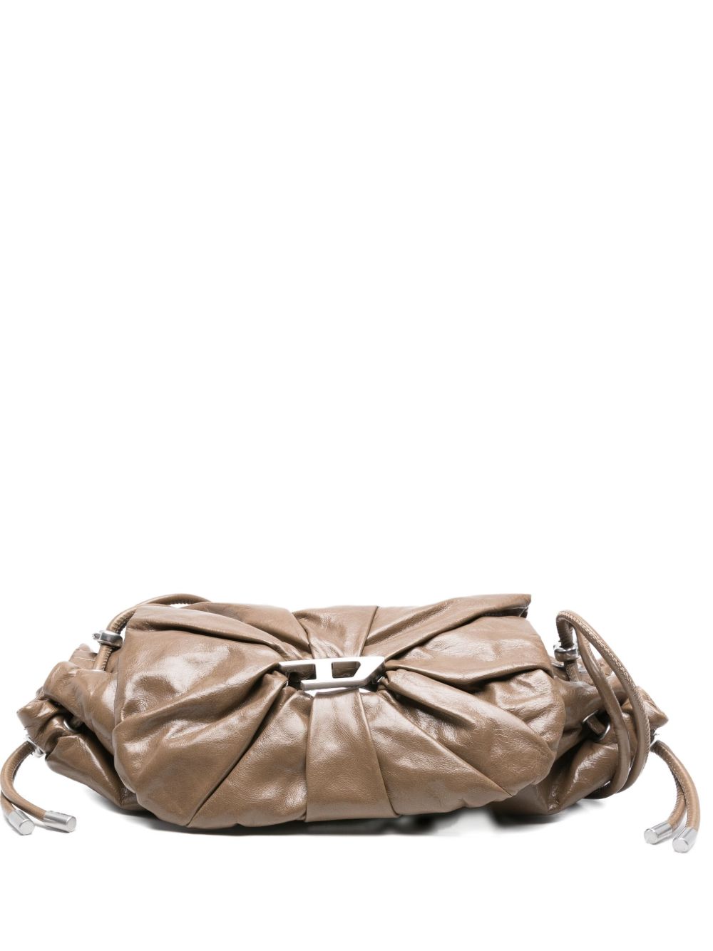 brown calf leather pleated detailing metallic clasp drawstring fastening