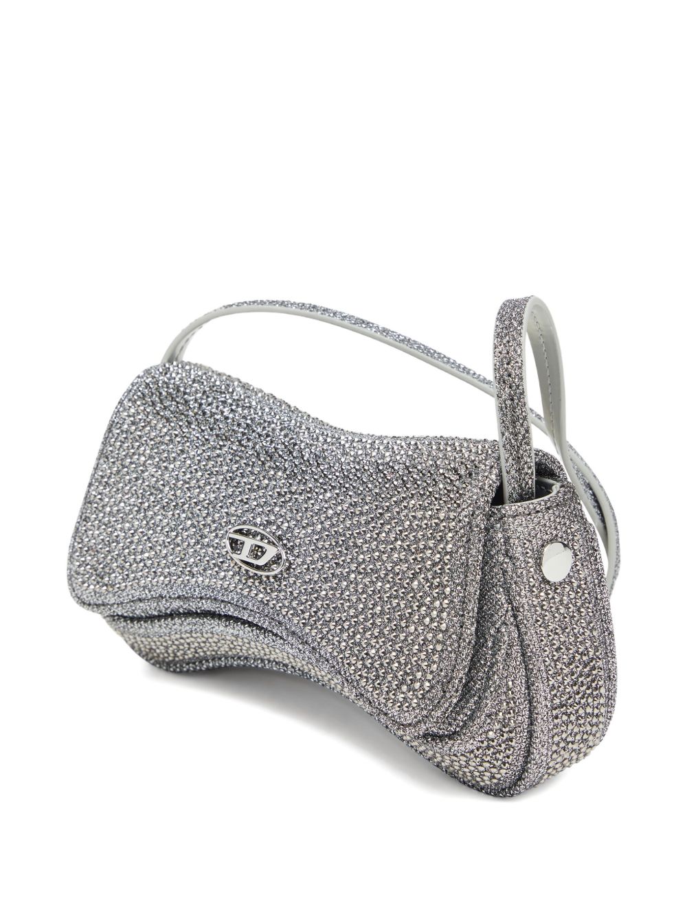 silver-tone crystal embellishment logo plaque curved shape detachable strap