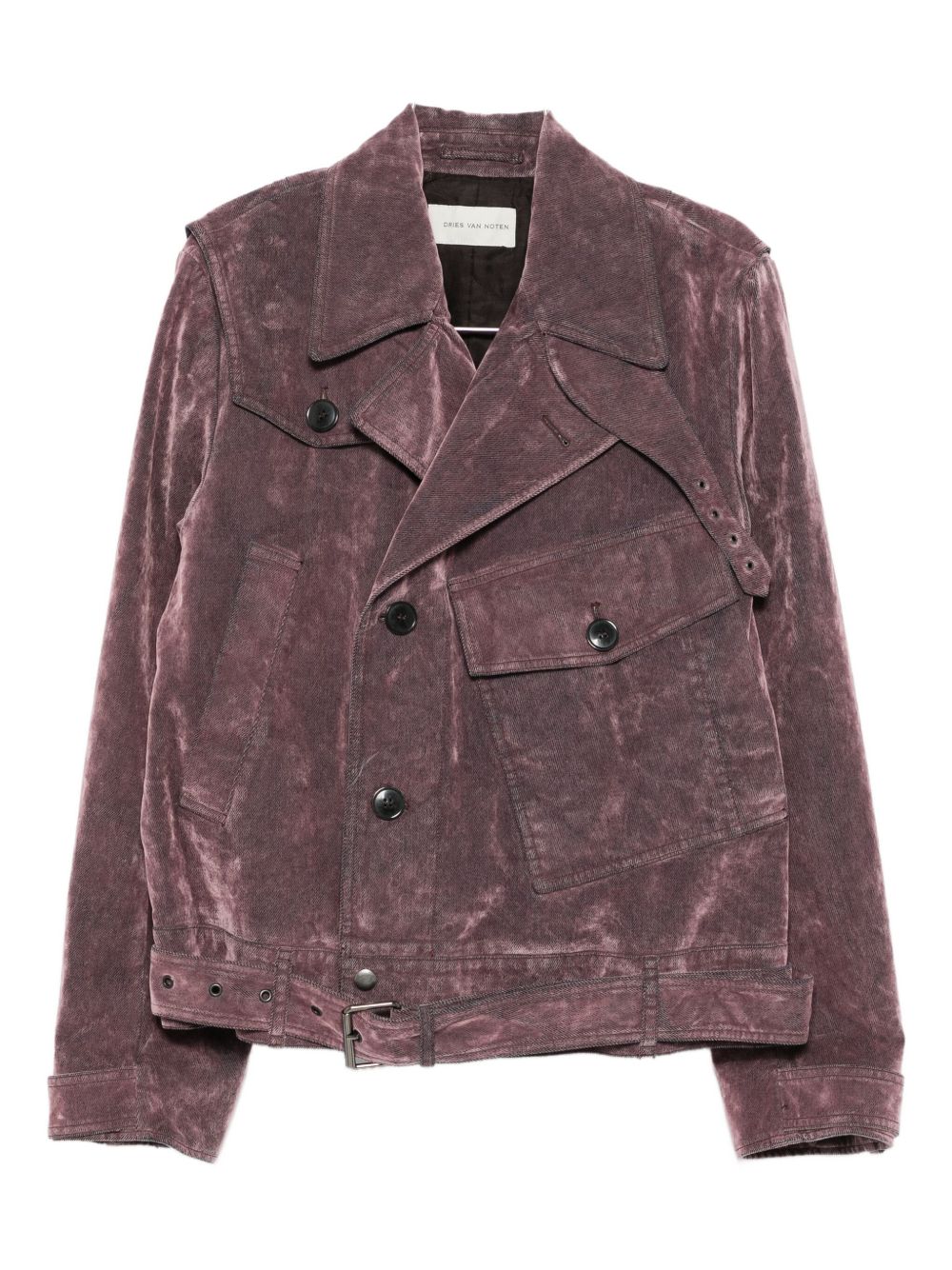 lilac purple corduroy texture button fastening chest pocket belted hem epaulettes