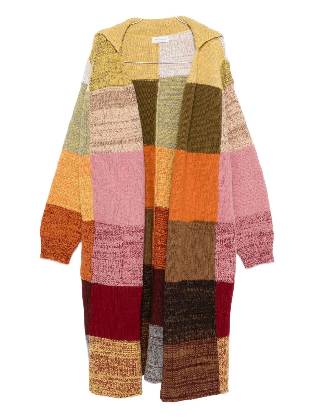 orange/multicolour wool blend patchwork design long sleeves open front