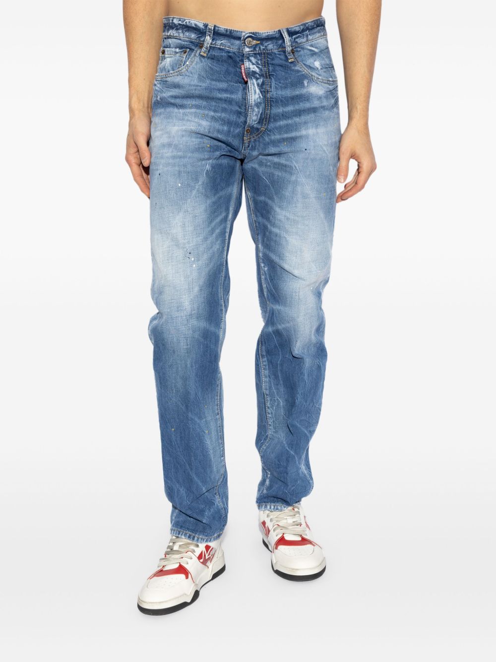 powder blue front button fastening classic five pockets logo tag tapered leg