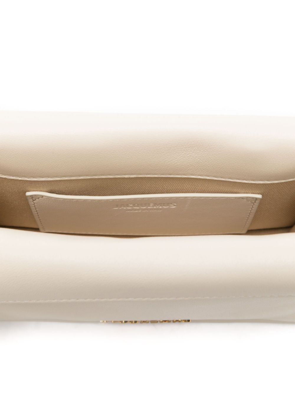 beige gold-tone logo lettering main compartment