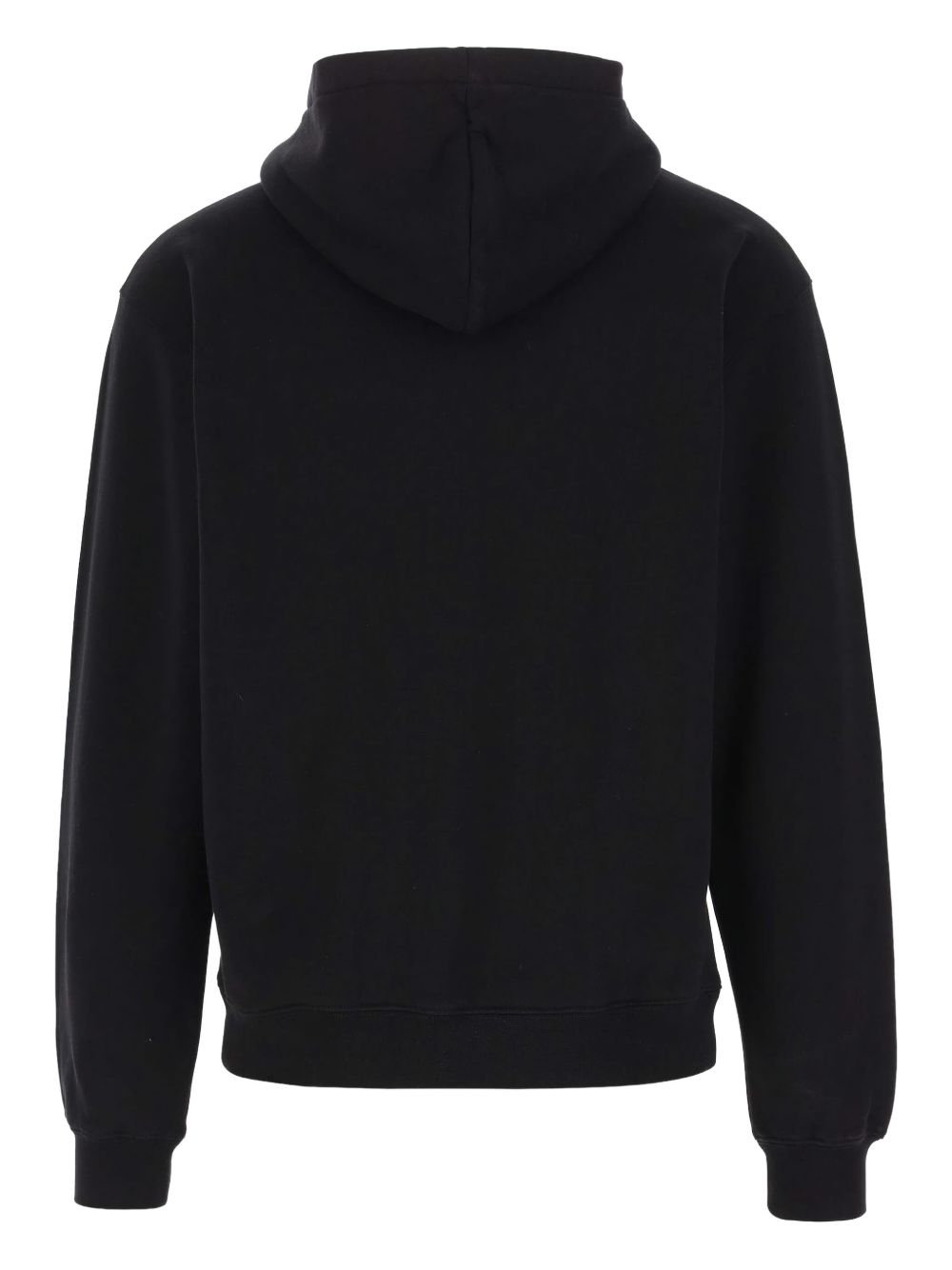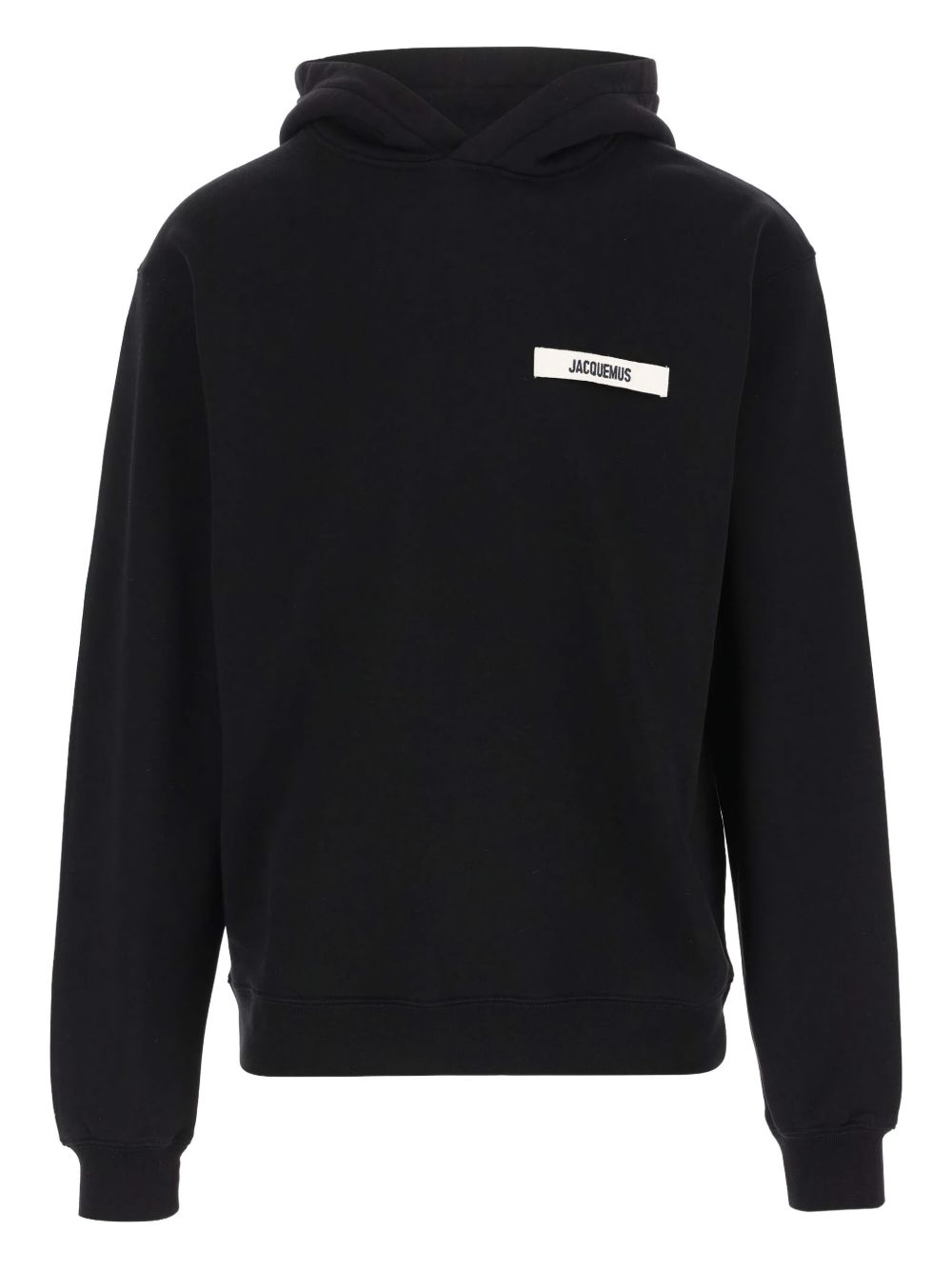 black cotton hooded long sleeves ribbed edges chest logo patch