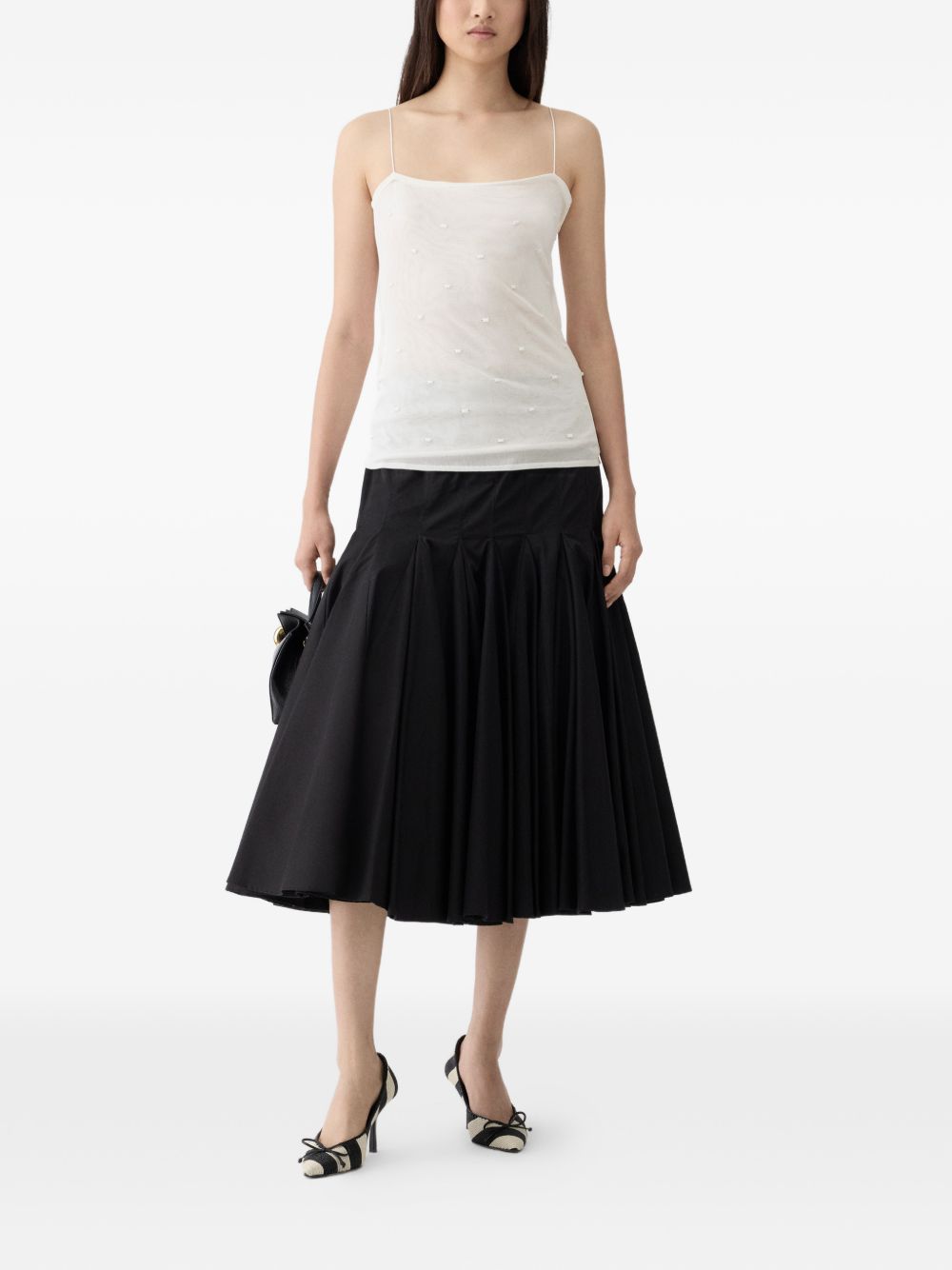 off-white fine knit square neck spaghetti straps embroidered design