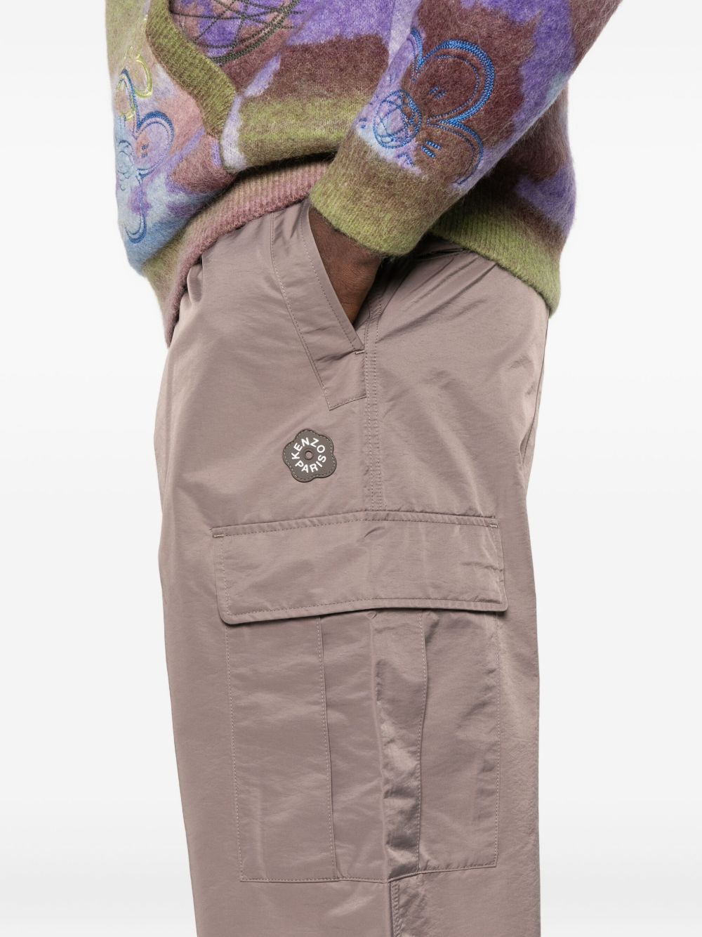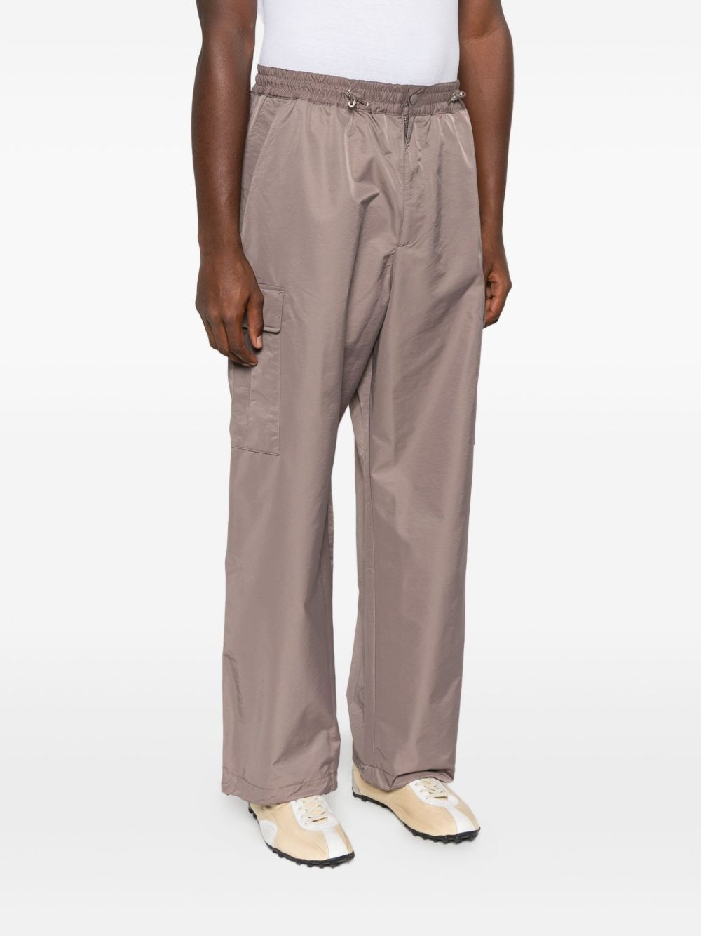 beige elasticated waistband logo appliqué side cargo pocket drawstring detail
