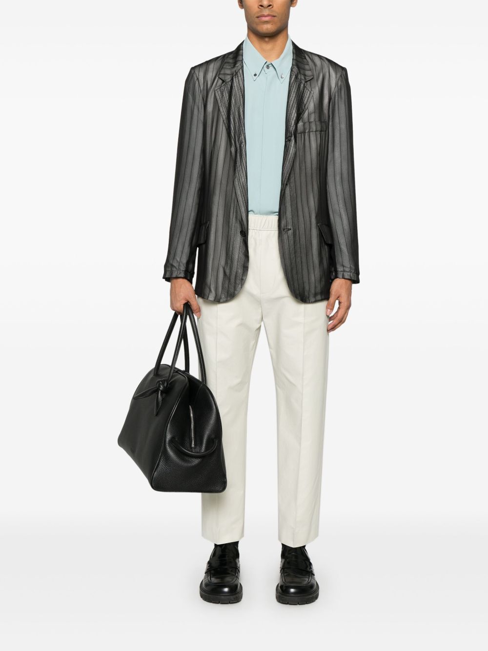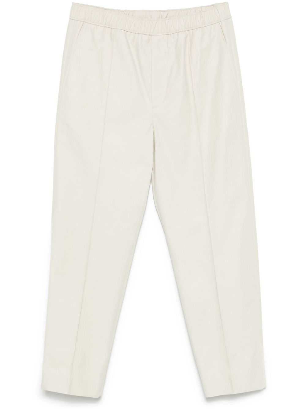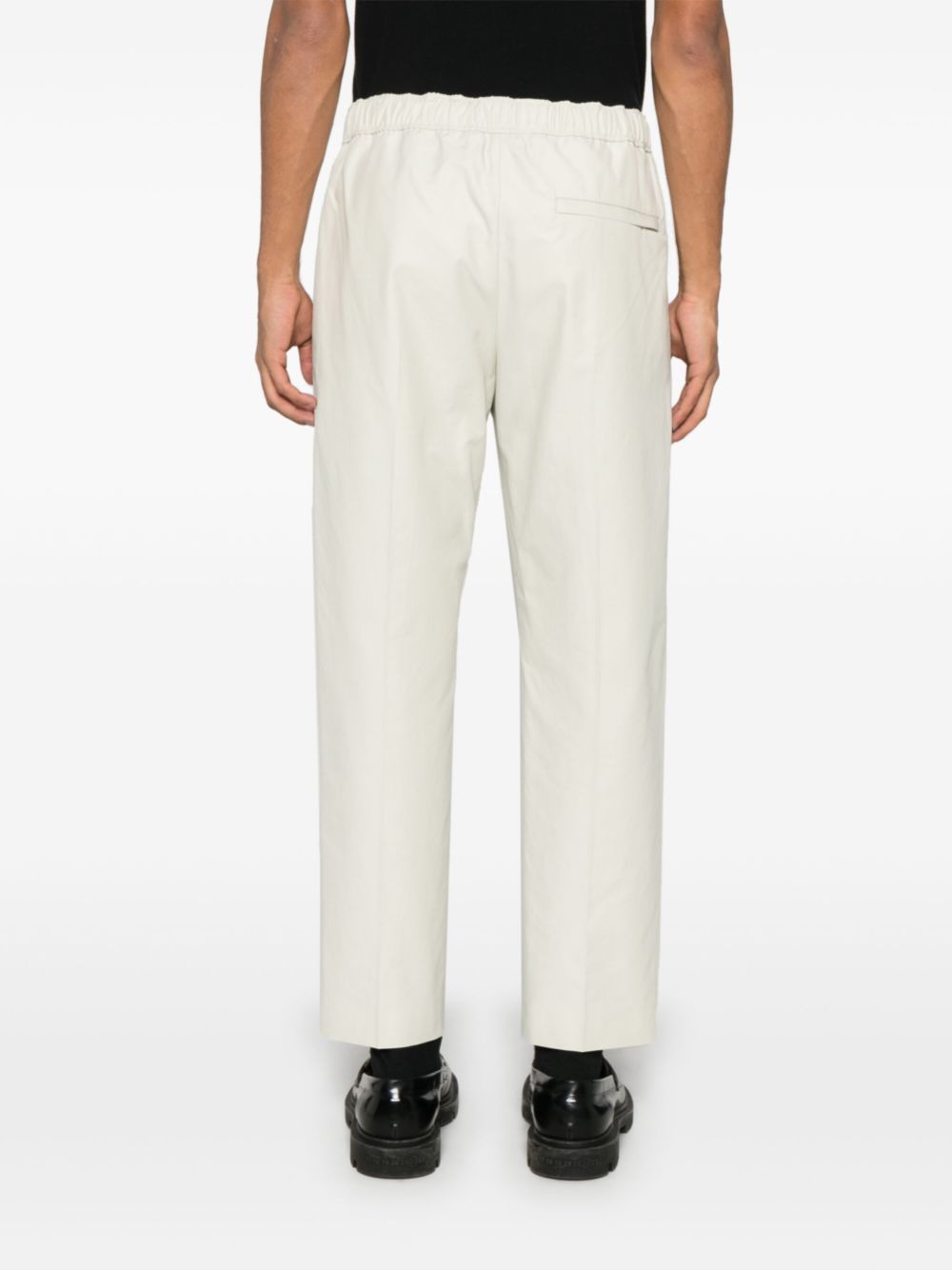 light beige zip fly fastening elasticated drawstring waistband two side slash pockets rear zip-fastening pocket