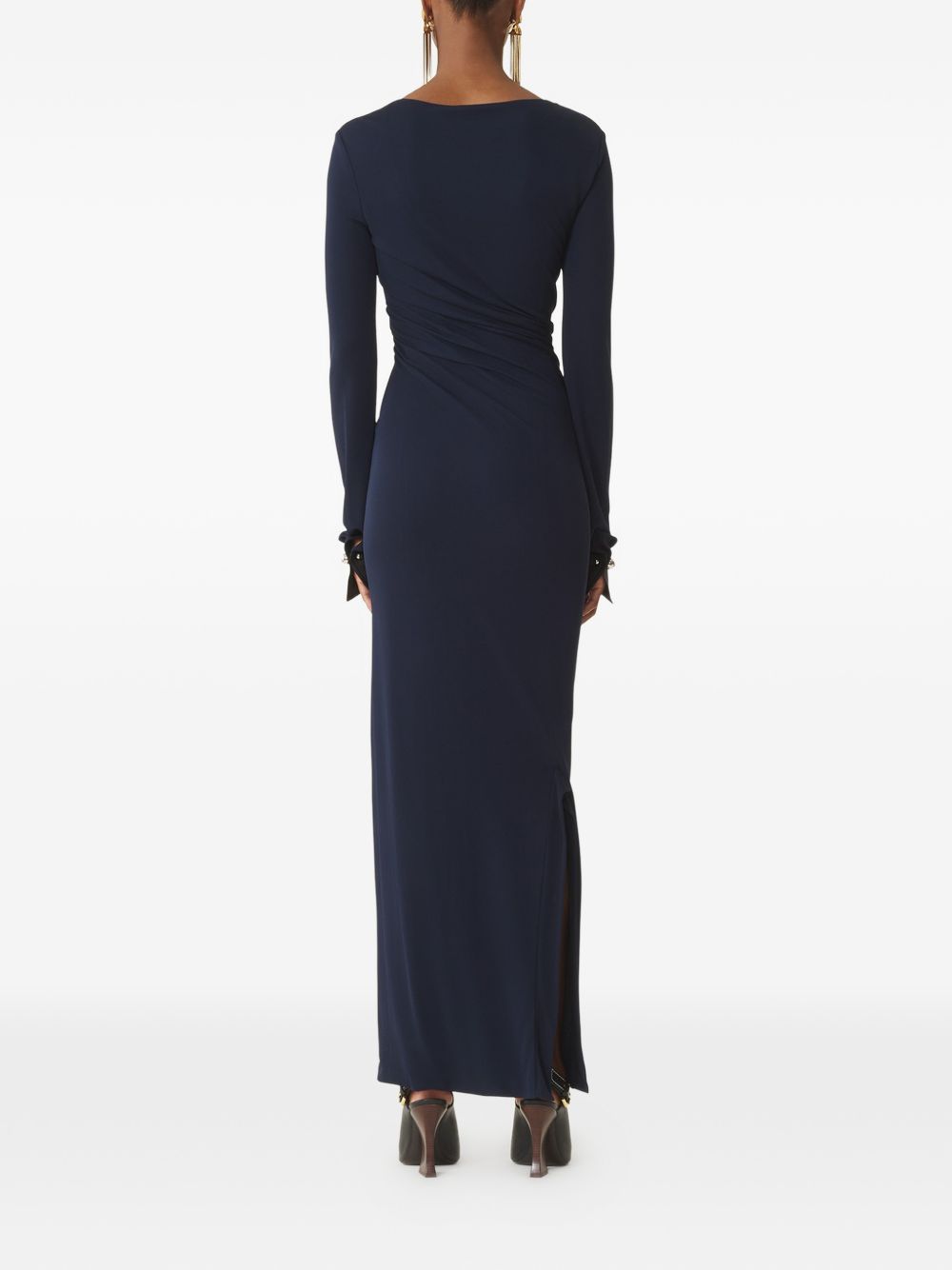 dark blue long sleeves buttoned cuffs side slit