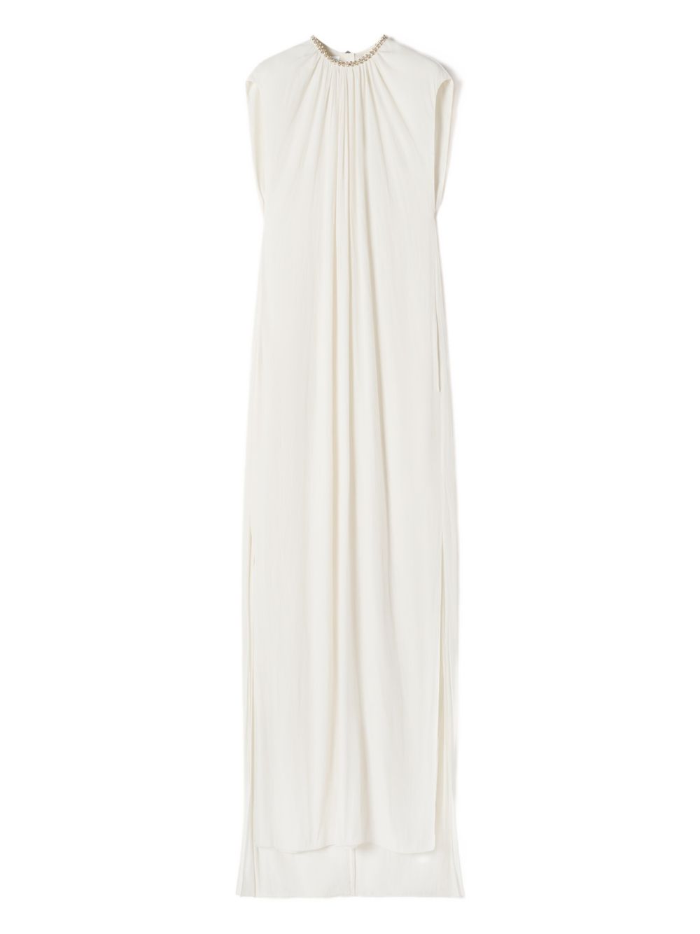 white embellished collar zip fastening side slit gathered detail sleeveless