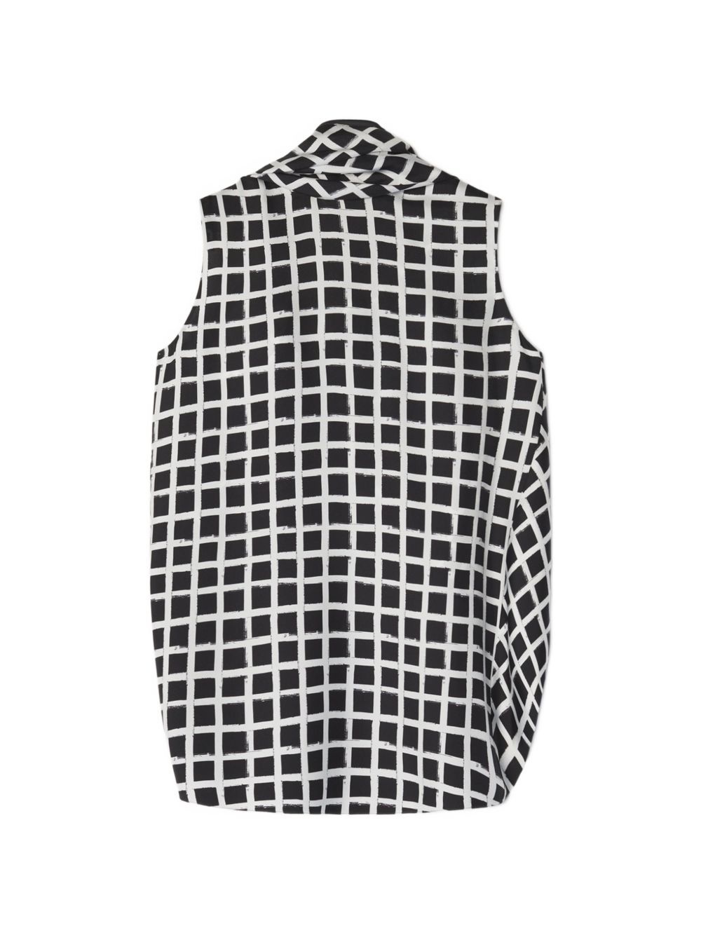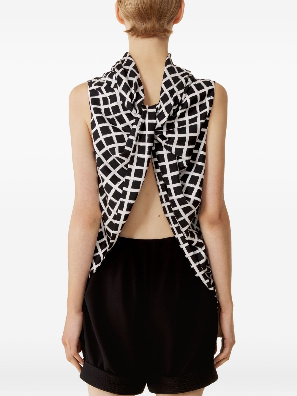 black and white check pattern sleeveless knot detail