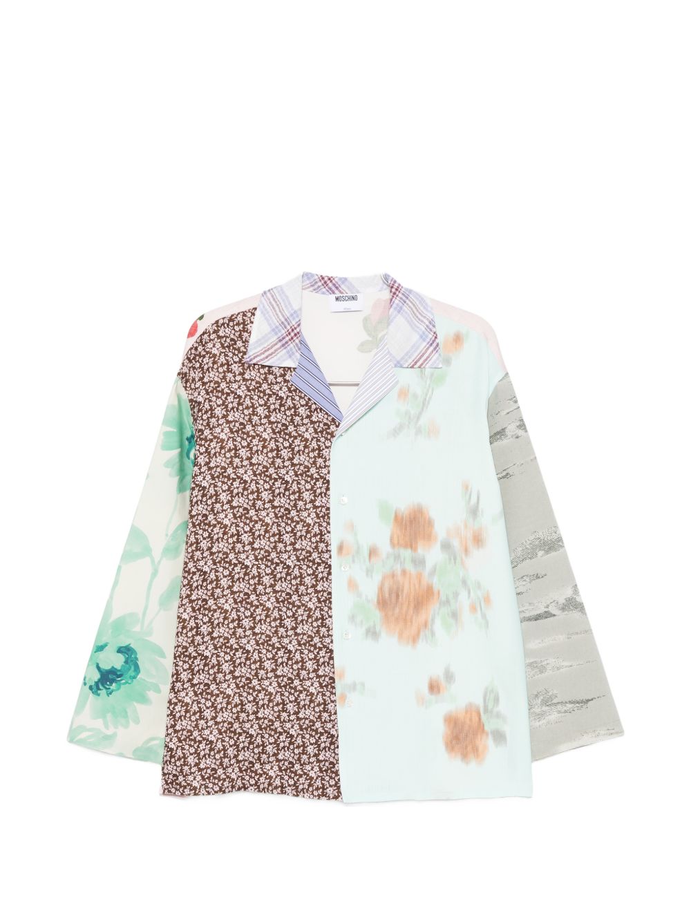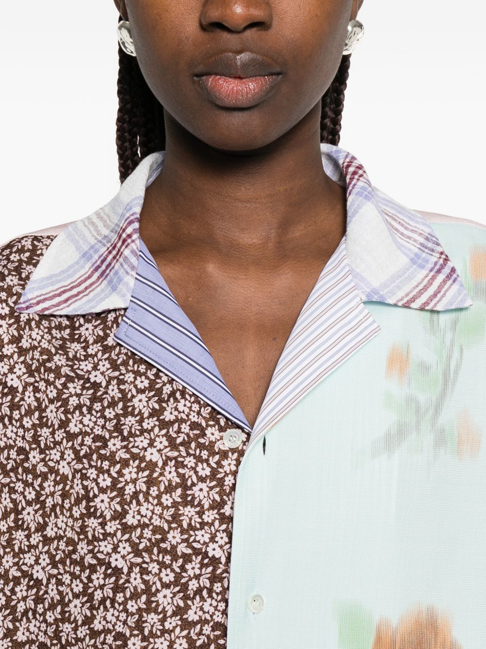 brown/multicoloured floral print patchwork design button fastening collared