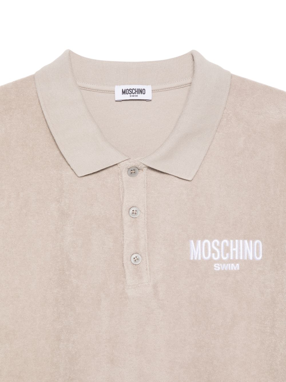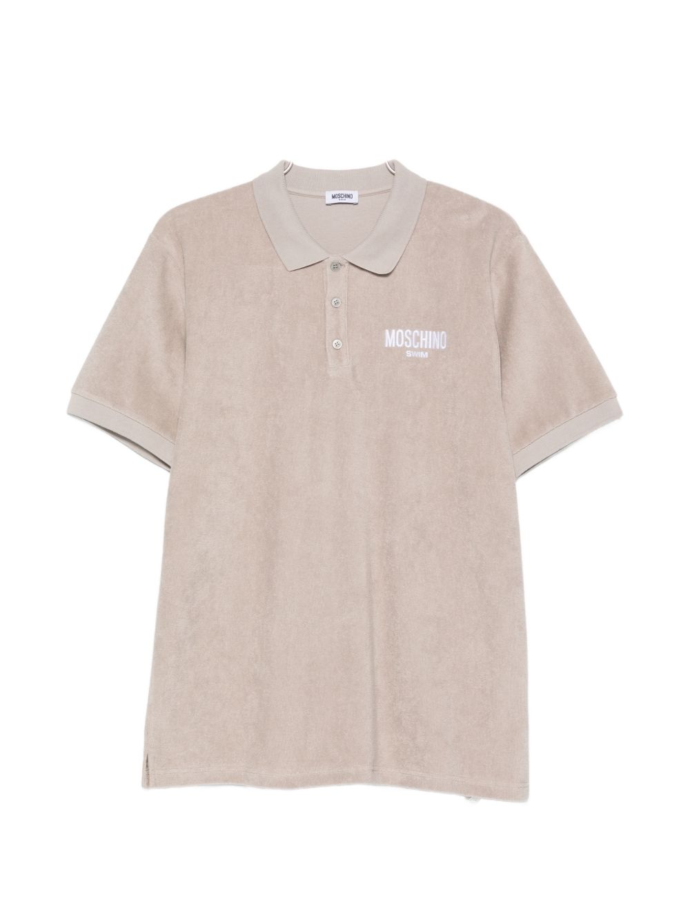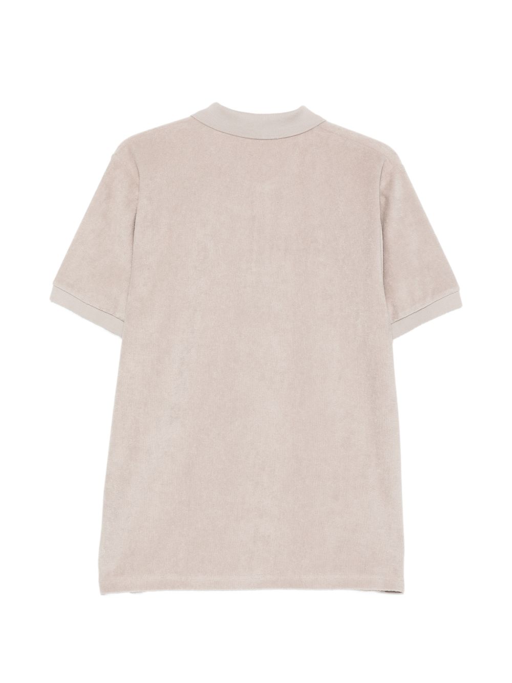 beige polo collar short sleeves button fastening tonal stitching straight hem