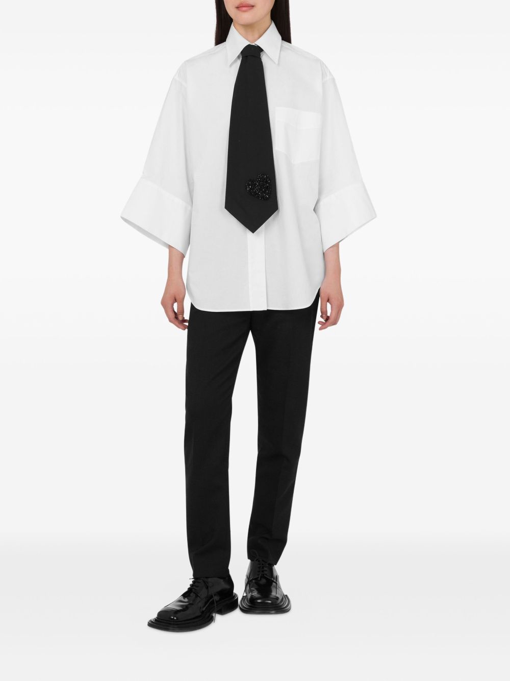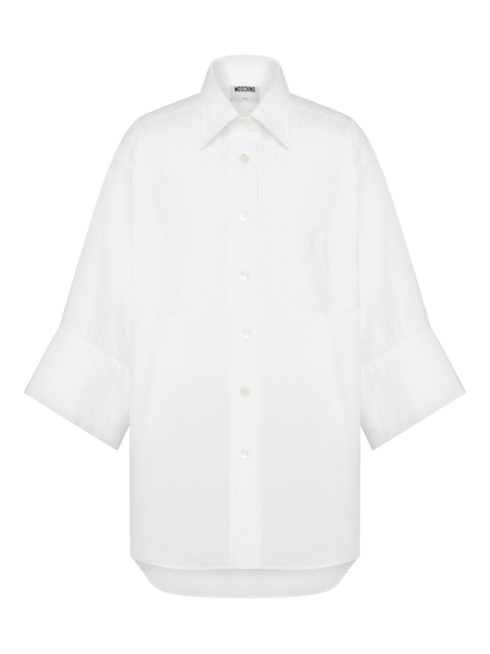 white cotton button fastening three-quarter sleeves wide cuffs chest pocket
