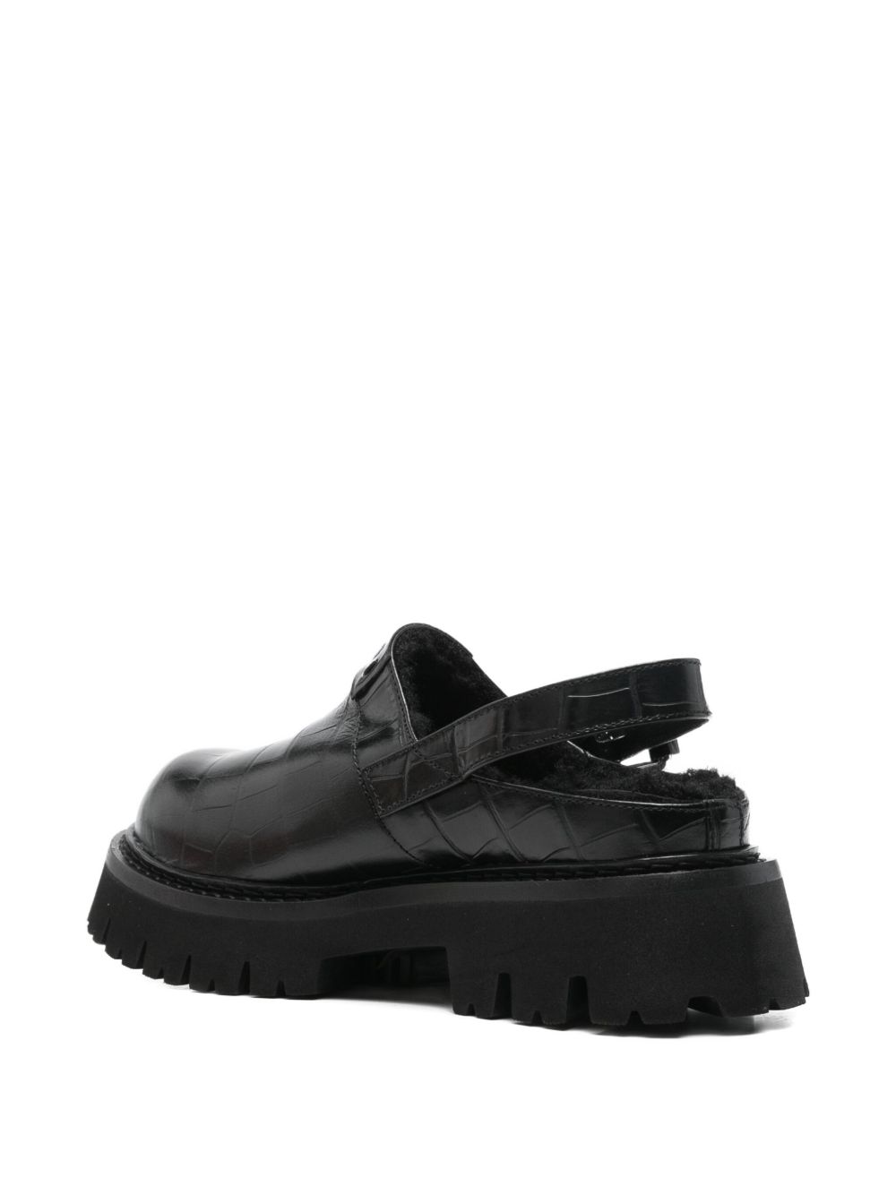 black leather buckle fastening lug sole slingback strap platform sole