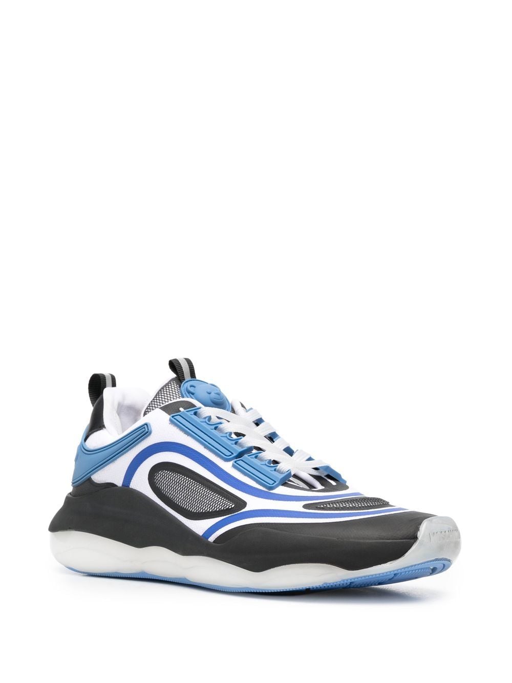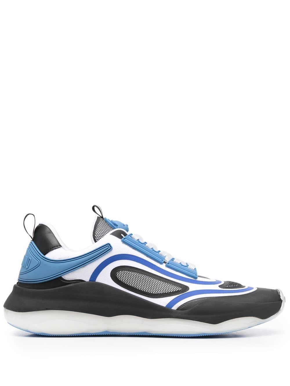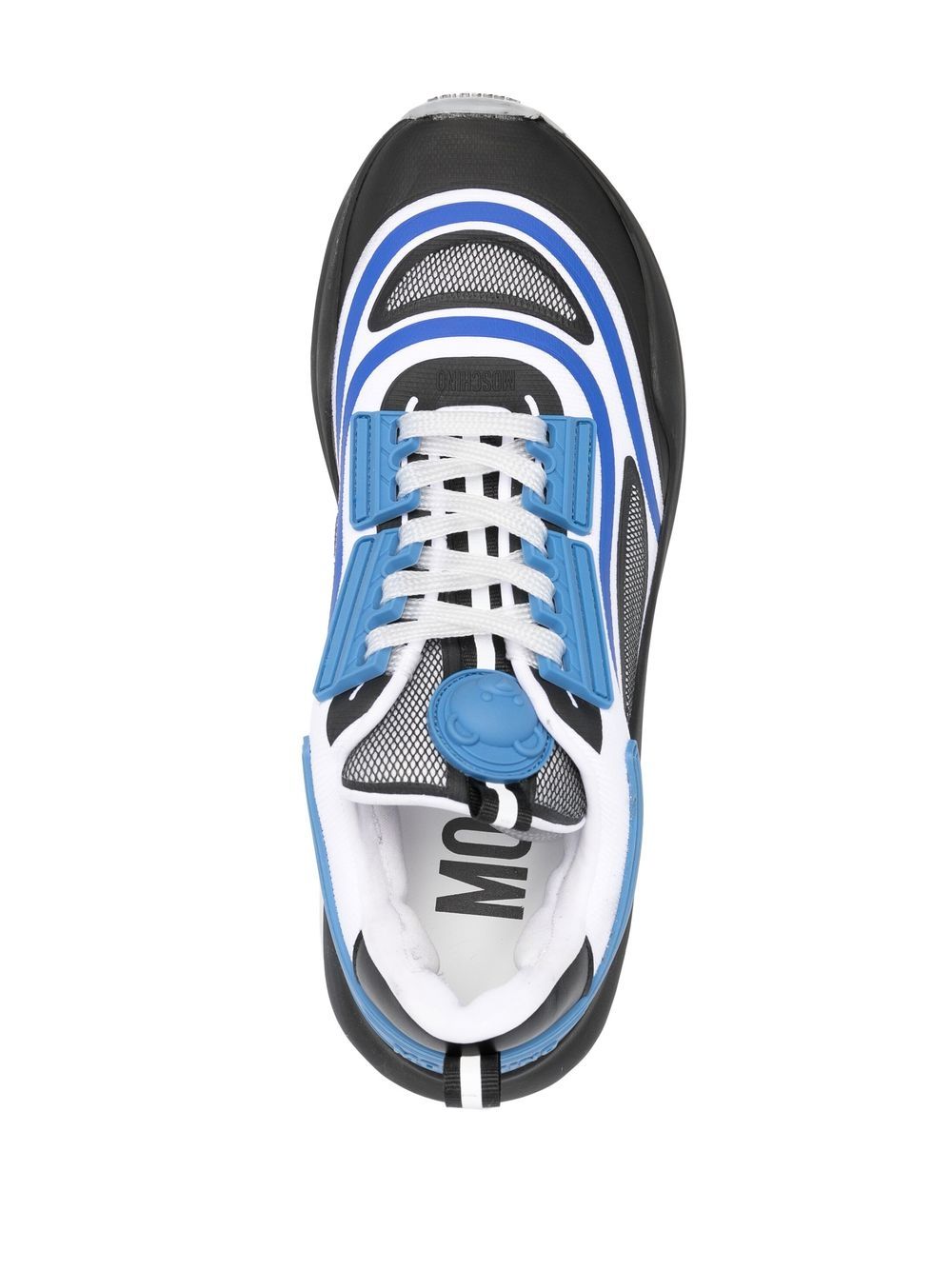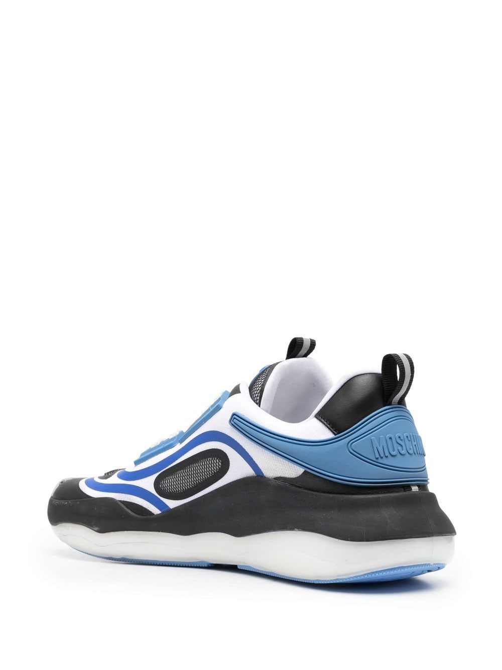 panelled low-top sneakers from MOSCHINO featuring white/multicolour, calf leather, panelled design, almond toe, front lace-up fastening and flat rubber sole.