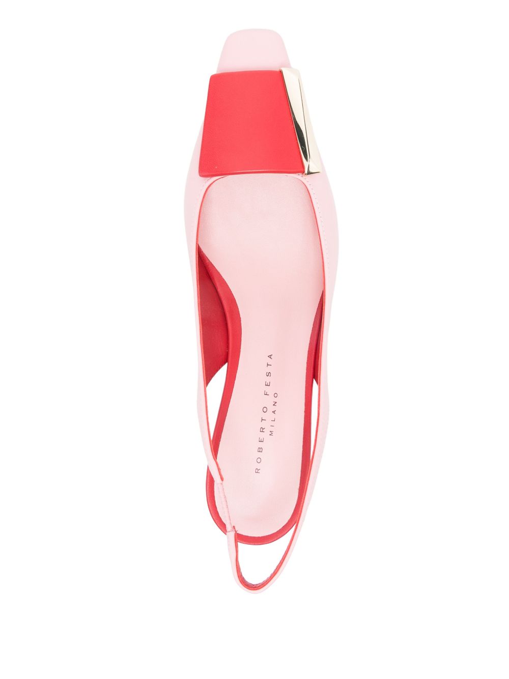 bubblegum pink elasticated slingback strap mid heel leather and rubber sole