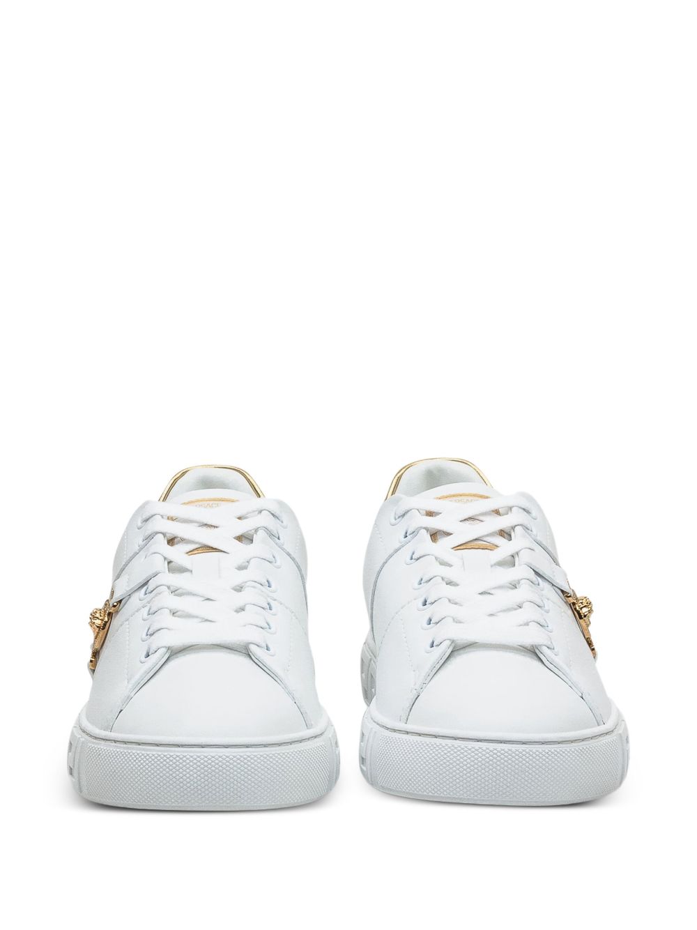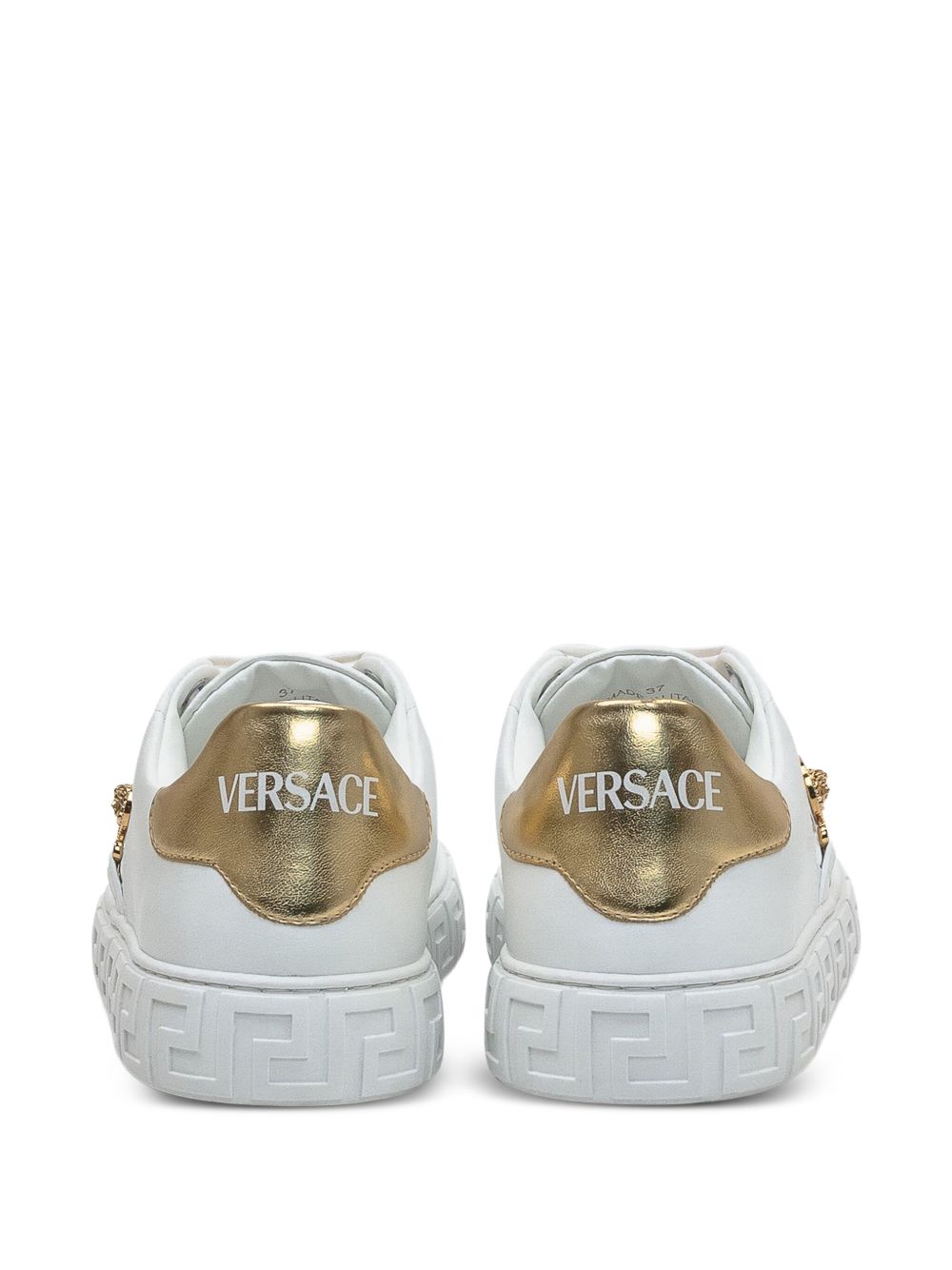 white gold-tone emblem greek-key pattern sole lace-up fastening leather upper flat sole