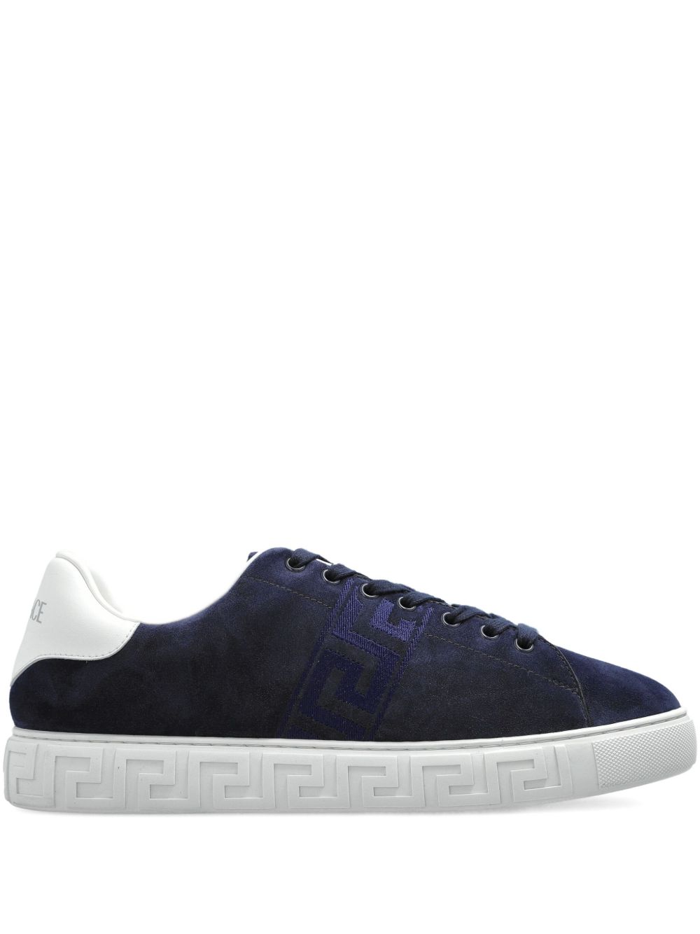 Navy blue front lace-up fastening rubber sole contrasting branded heel counter signature Greca detailing