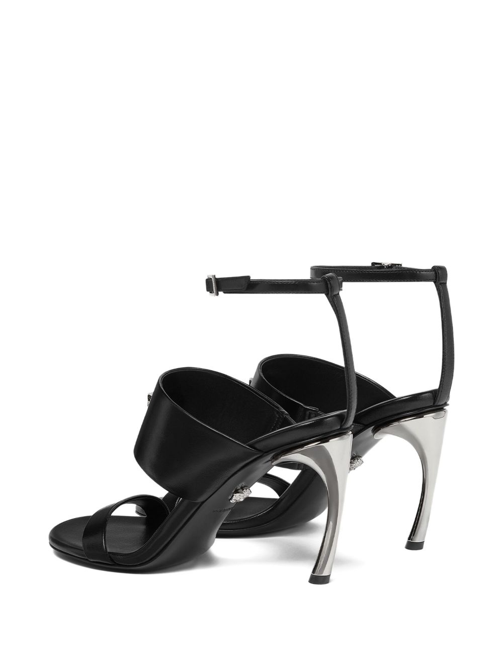 black calf leather ankle strap buckle fastening sculpted heel Medusa Head embellishment two straps