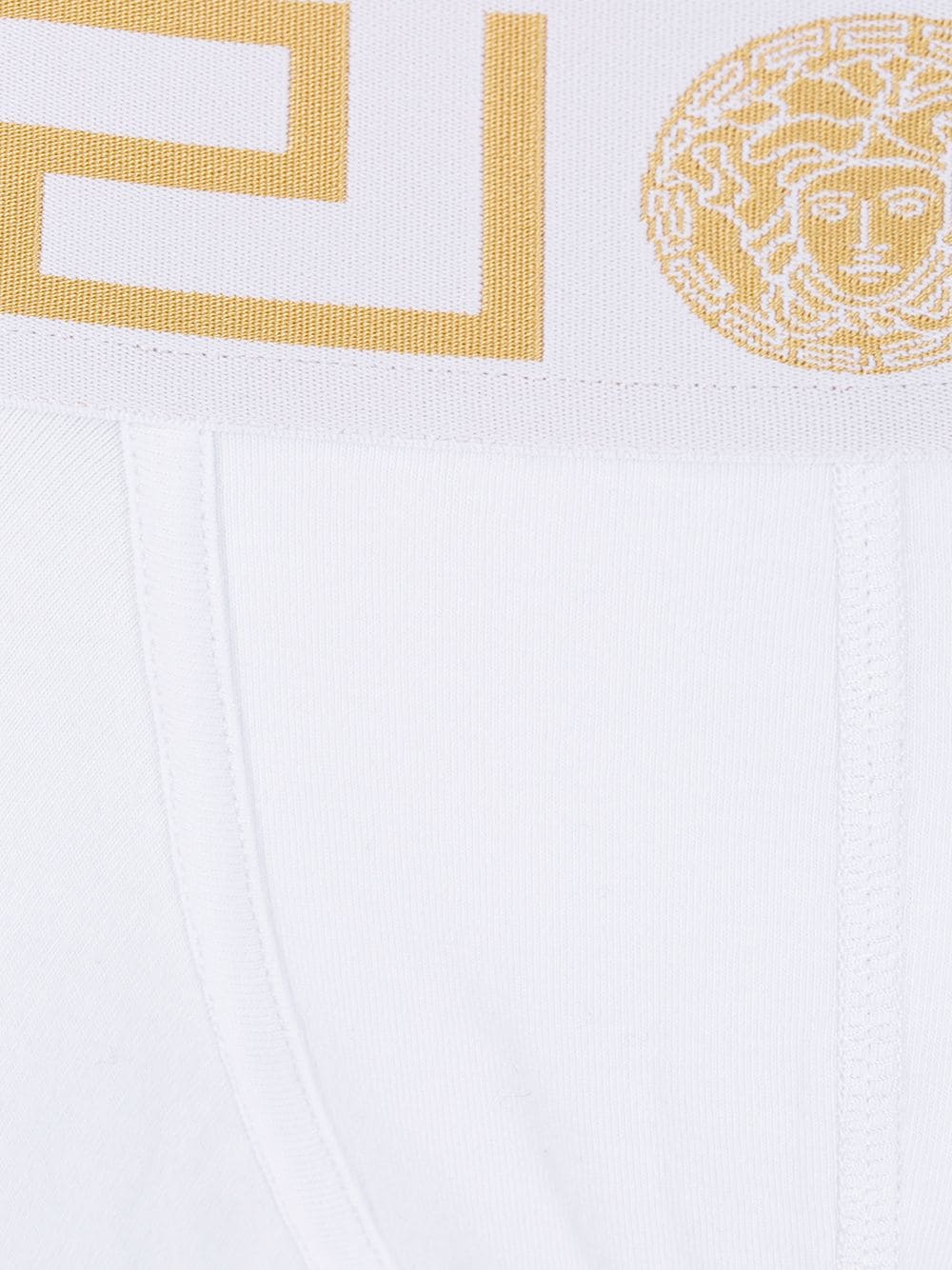 white organic cotton blend elasticated waistband Medusa Head motif Just a reminder that this piece must be tried on over your own garments. This item is made from at least 50% organic materials. Learn more about what makes a product Conscious on our Conscious Criteria page.