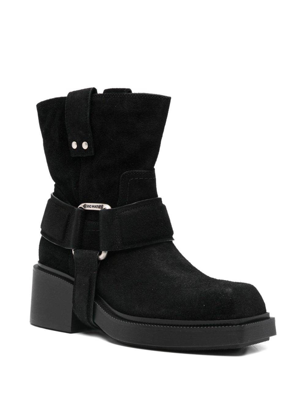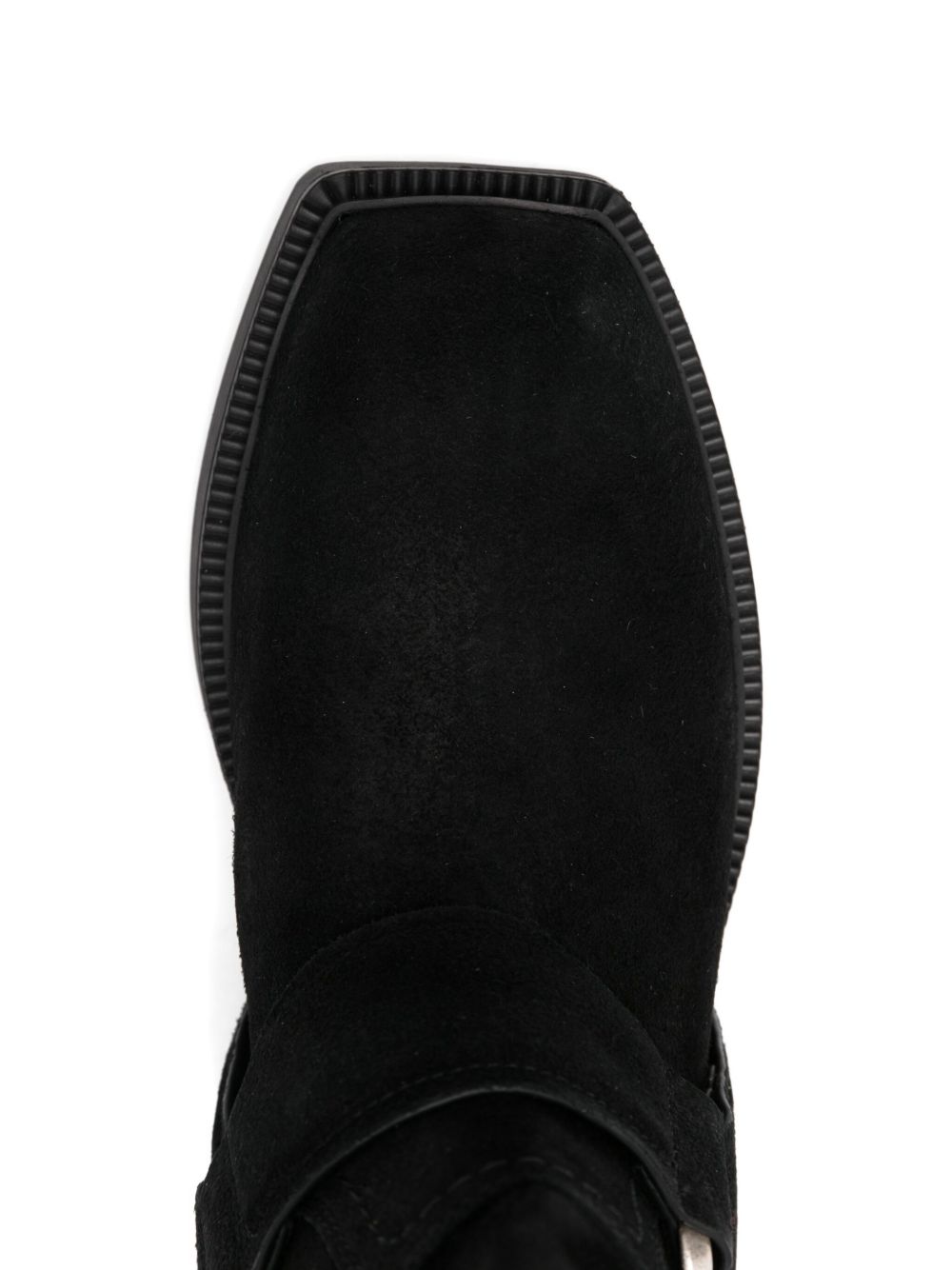 black strap detail silver-tone hardware square toe low block heel pull-on style